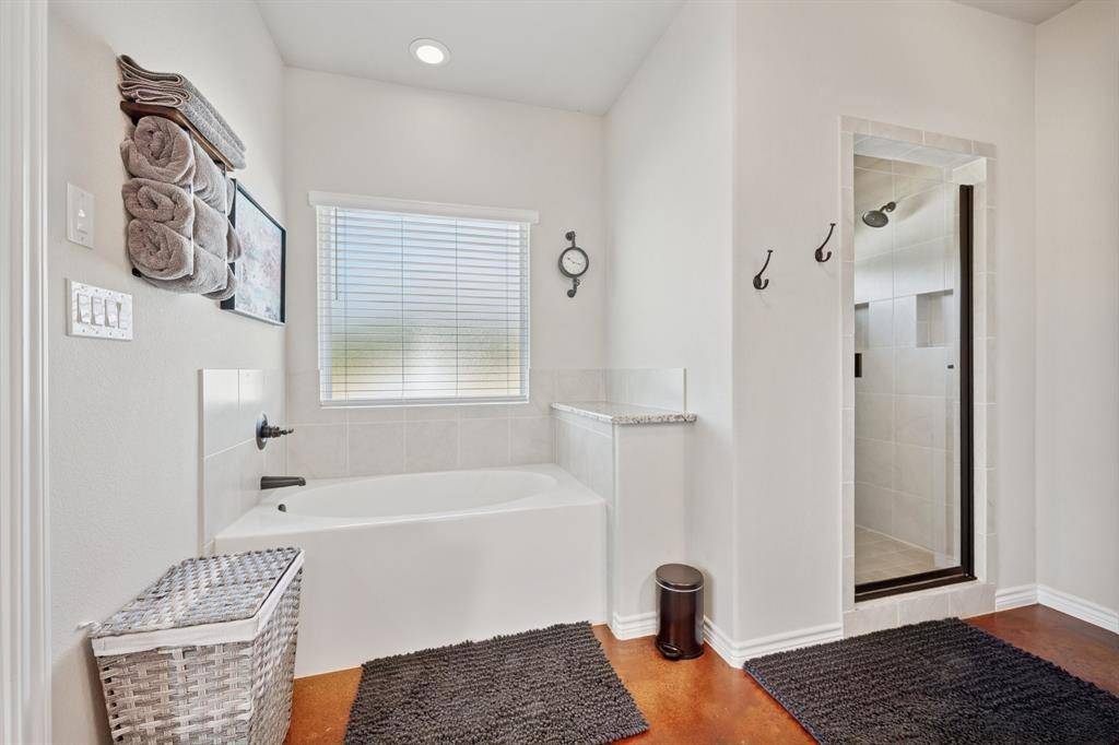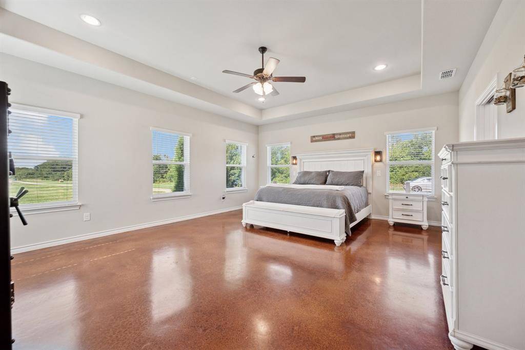 The primary suite is a true retreat, with a spa-like bath that includes dual vanities, a soaking tub, and a walk-in shower. The oversized closet is also a tornado shelter, adding both function and peace of mind. Two additional bedrooms and a well-planned laundry area provide comfort and versatility.
