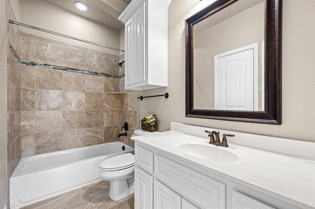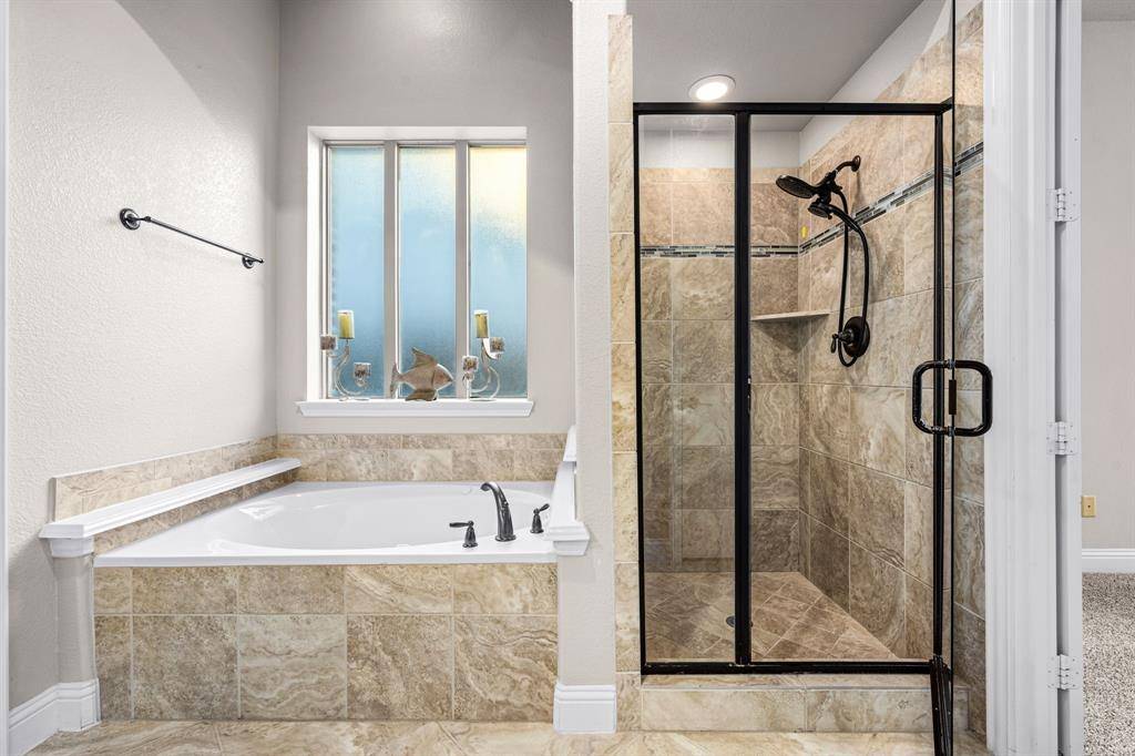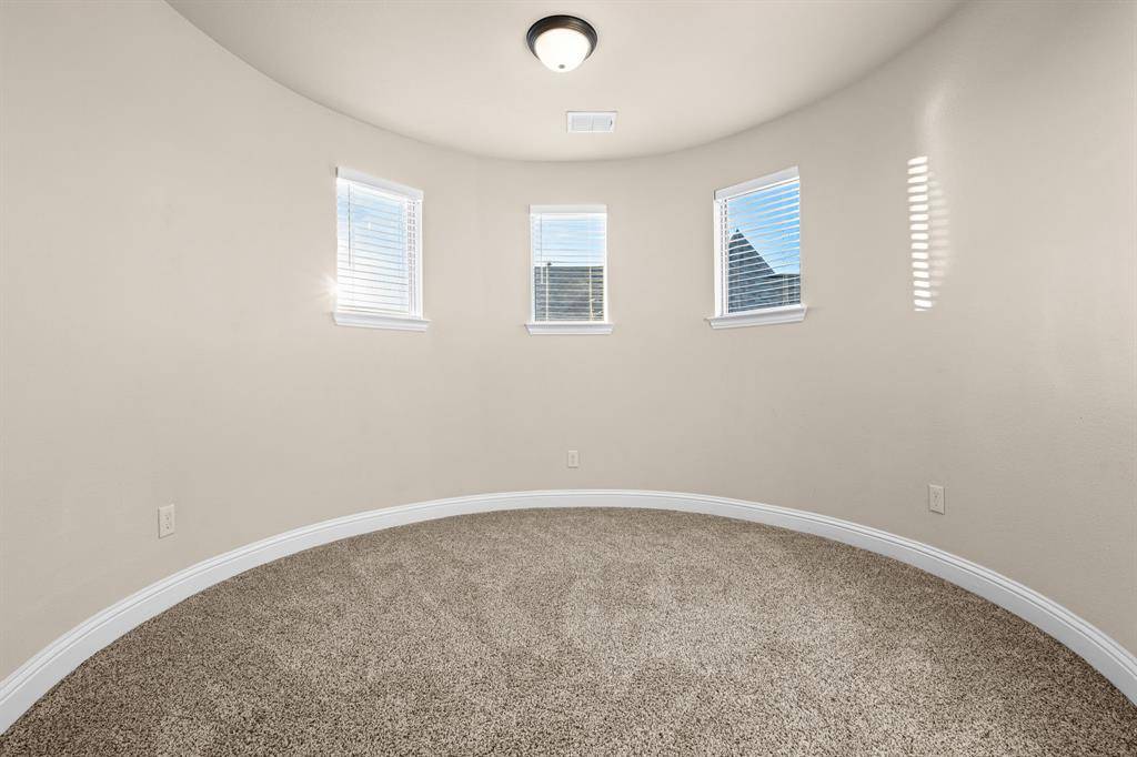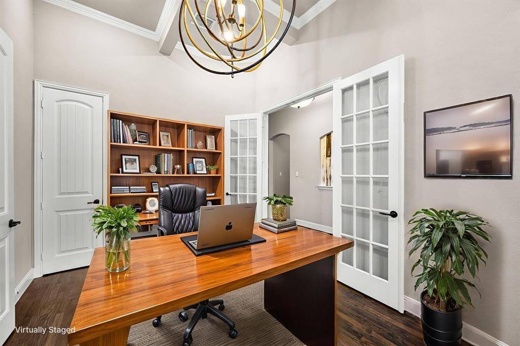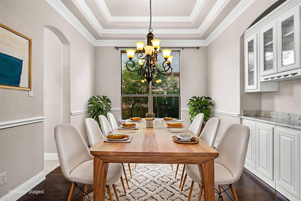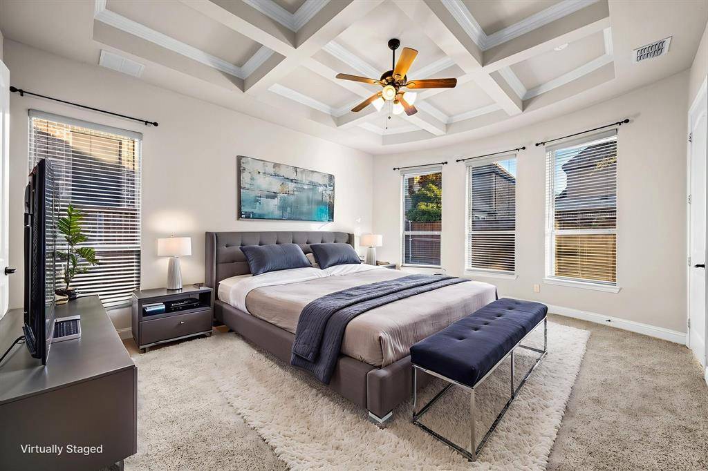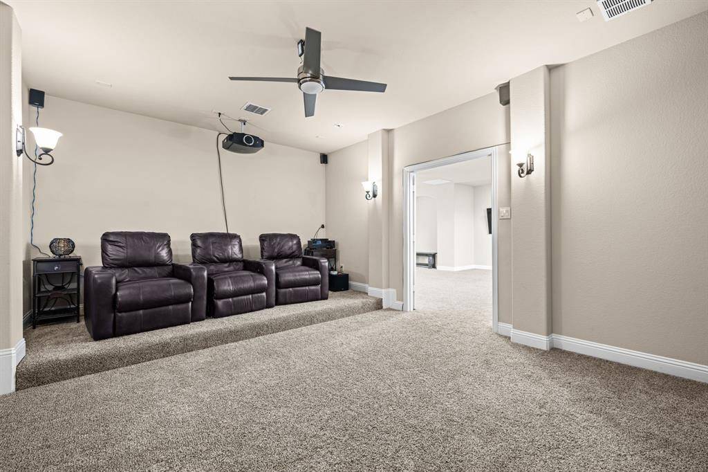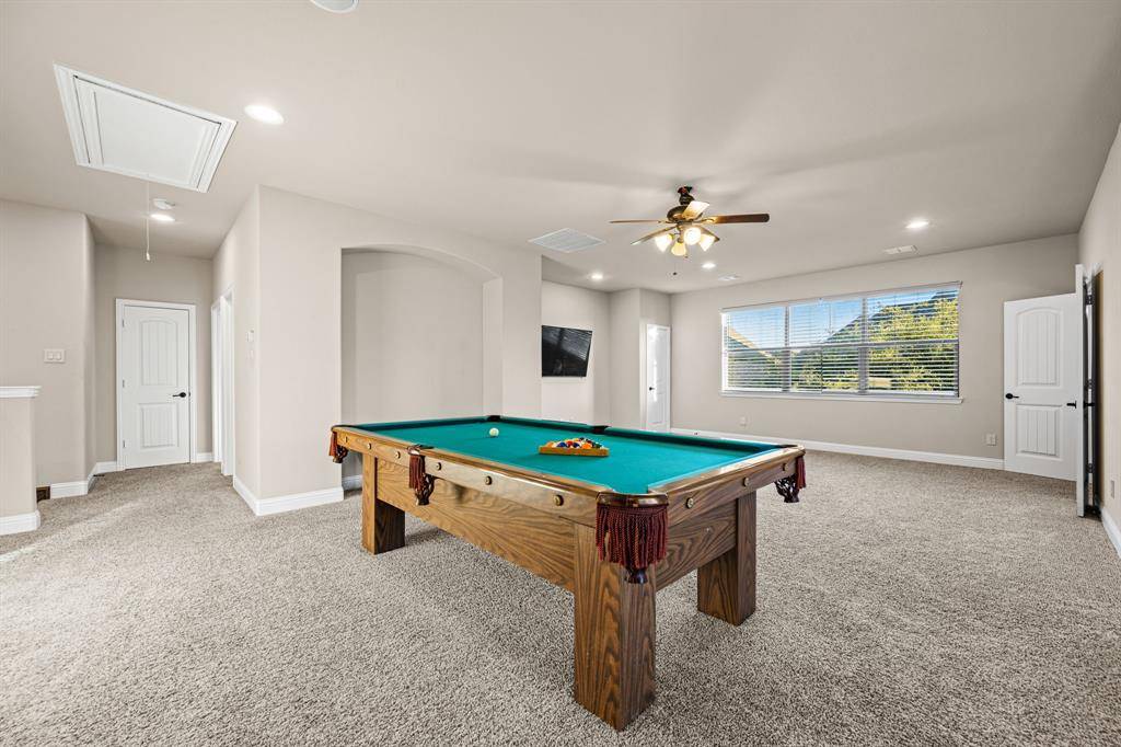 Now offered at an improved price, this former model home showcases the highly sought-after Baypoint floor plan in desirable Breezy Hill Estates. From the moment you enter, you're welcomed by a spacious foyer. Just off the entry is a private office with elegant glass doors—perfect for working from home.To the left, the formal dining room features a coffered ceiling and a built-in cabinet, adding both character and functional storage. The chef's kitchen is designed for both everyday living and entertaining, offering a large pantry, generous counter space, and an oversized island that overlooks the living room. The open flow between rooms creates an inviting space ideal for gatherings.The primary suite is located on the main level and features new carpeting and a coffered ceiling for an added touch of elegance. The spa-like primary bath provides a relaxing retreat. Two additional bedrooms and a full bath complete the downstairs layout.Upstairs, a large central game room offers space for a pool table and plenty of room for play or entertaining. A media room and a private guest suite complete the second floor.Step outside to enjoy the covered patio and pergola—perfect for entertaining or simply unwinding. Breezy Hill Estates offers convenient access to shopping and dining and is located within the highly rated Rockwall ISD.