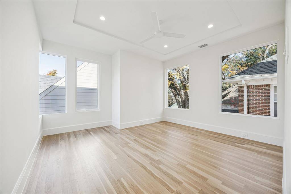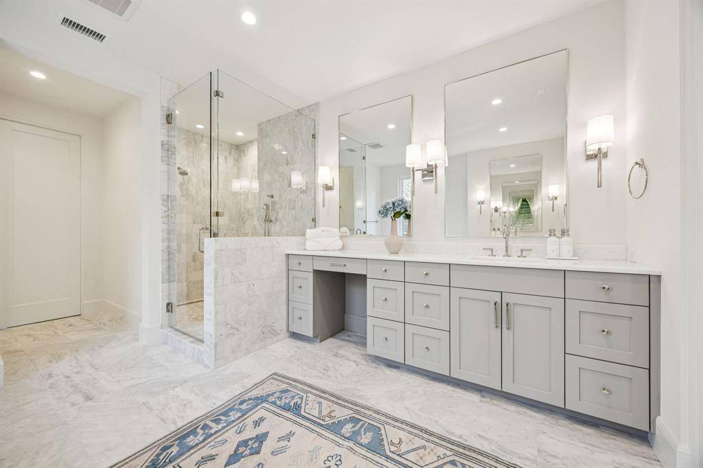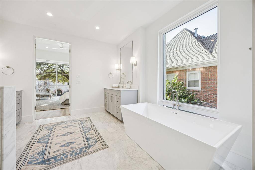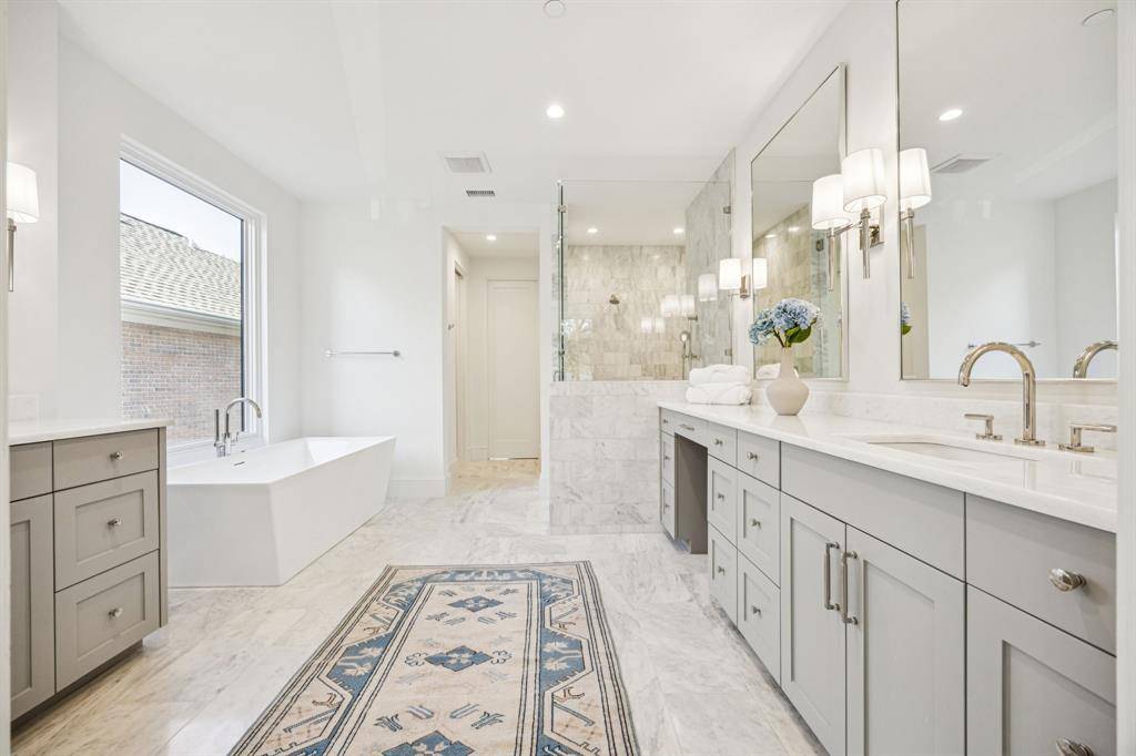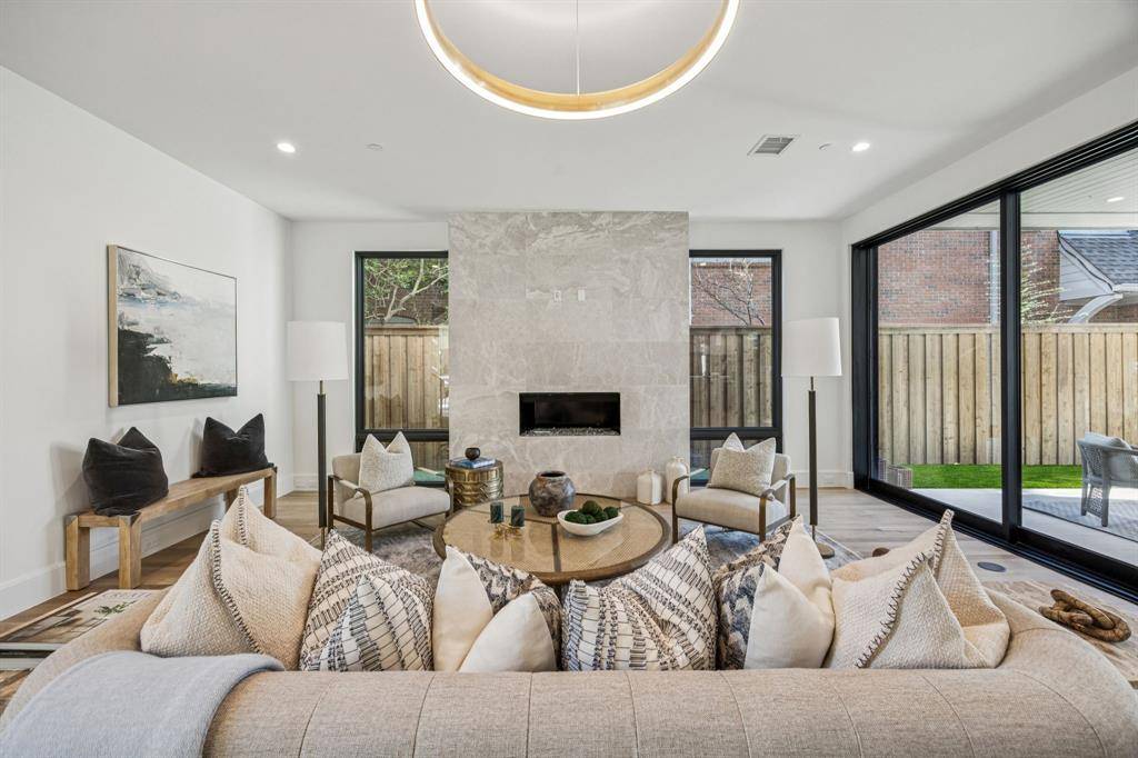 Stunning new construction in Highland Park Indepependant School District zoned to University Park elementary school. Prime location on a beautiful tree lined street walkable to schools and parks. This sophisticated modern design with a corner unit sliding patio door that brings in loads of natural light and combined with the motorized screens brings the outdoors in. The sleek stone exterior is enhanced by a 2-story window unit showing off the free-standing hand forged steel staircase. If you're looking for the ultimate flex space for guests you found it, this home has a 2-story guest suite with an office space on the first floor and a loft with built in cabinets and a full bath on the second floor that would act as the 6th bedroom if needed. The first floor has wide open spaces to include a nicely appointed wet bar with fridge drawers, ice maker and refrigeration that is flanked by the dining room, family room and connects seamlessly to the kitchen for entertaining ease. Waterfall island top and floating powder bath stone are like jewelry for the home. The primary suite has floor to ceiling corner windows that make the house shine. All of the secondary bedrooms have full baths and generous closets. Several rooms on the 2nd or 3rd floor can be used as game or workout spaces. Full encapsulated foam insulation and high efficiency water heaters and furnaces help this house be low maintenance. A must see in person!