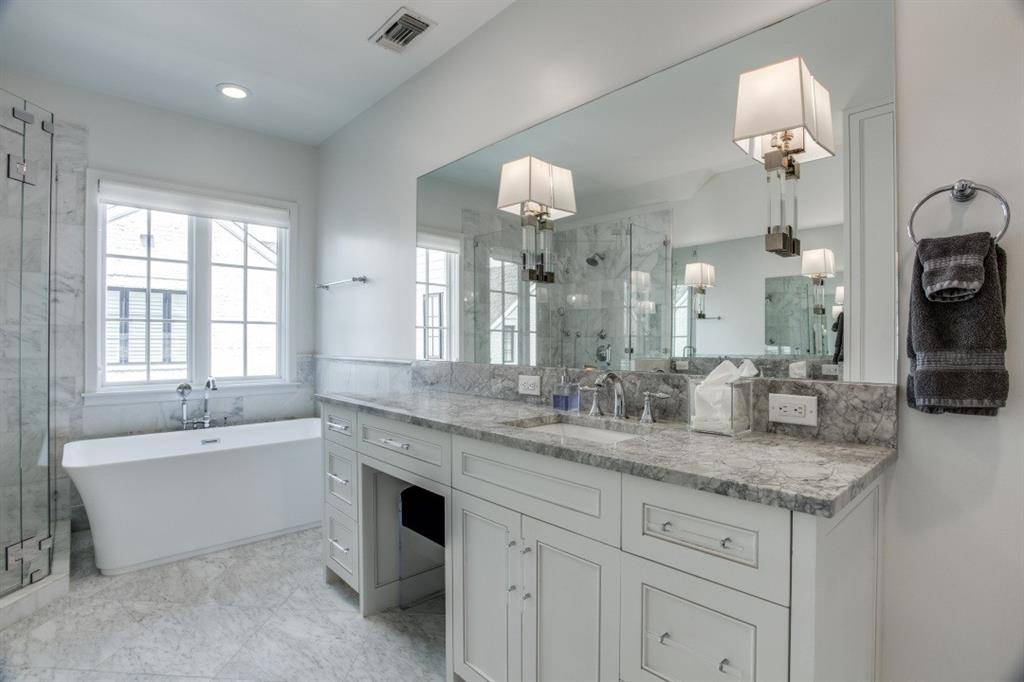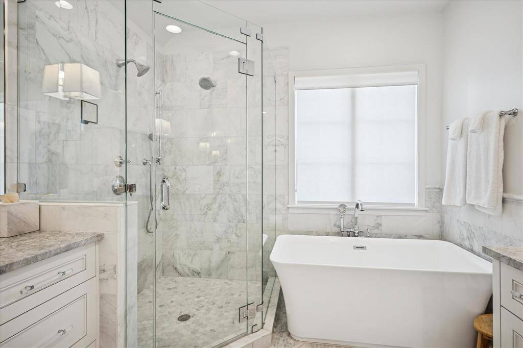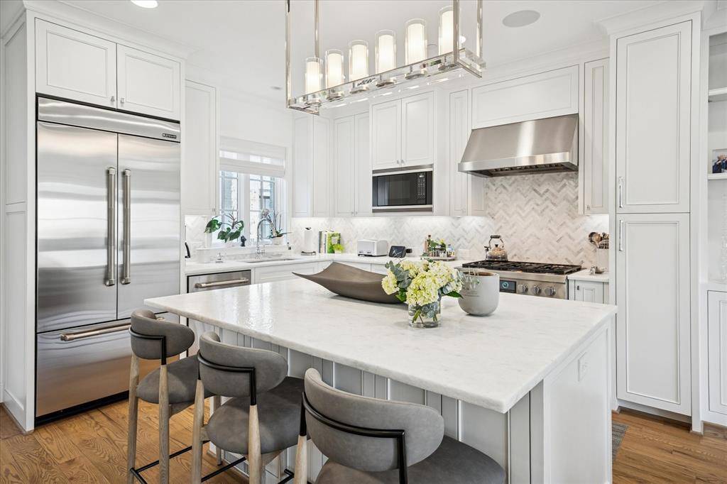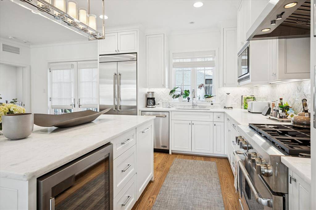 Contemporary luxury condo in University Park, walking distance to Snider Plaza! Featuring a Chef's kitchen including a gas range with 6 burners, built in refrigerator-freezer and wine chiller. The front entrance and attached garage enters on the first floor including a flex room to suit your needs - office, playroom or exercise room. The primary bedroom with ensuite bathroom includes separate vanities, garden tub and walk-in closet is located on the third floor as well as two additional ensuite bedrooms on the second and third floors. Washer and Dryer included. Property is not furnished.