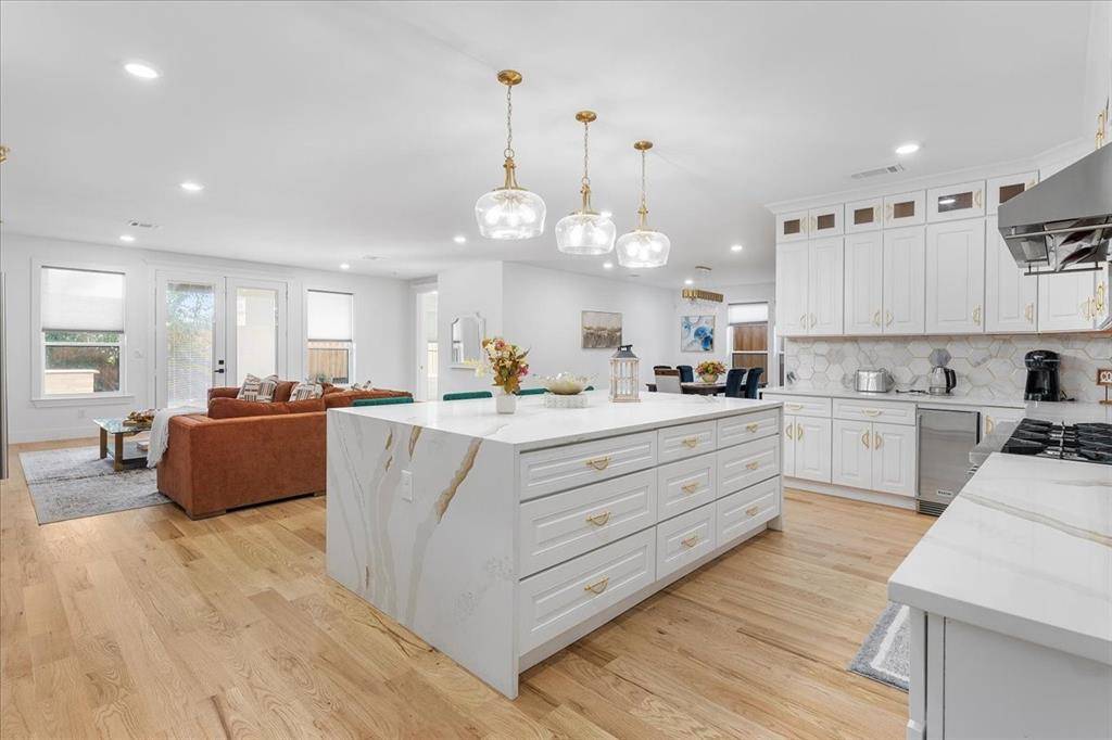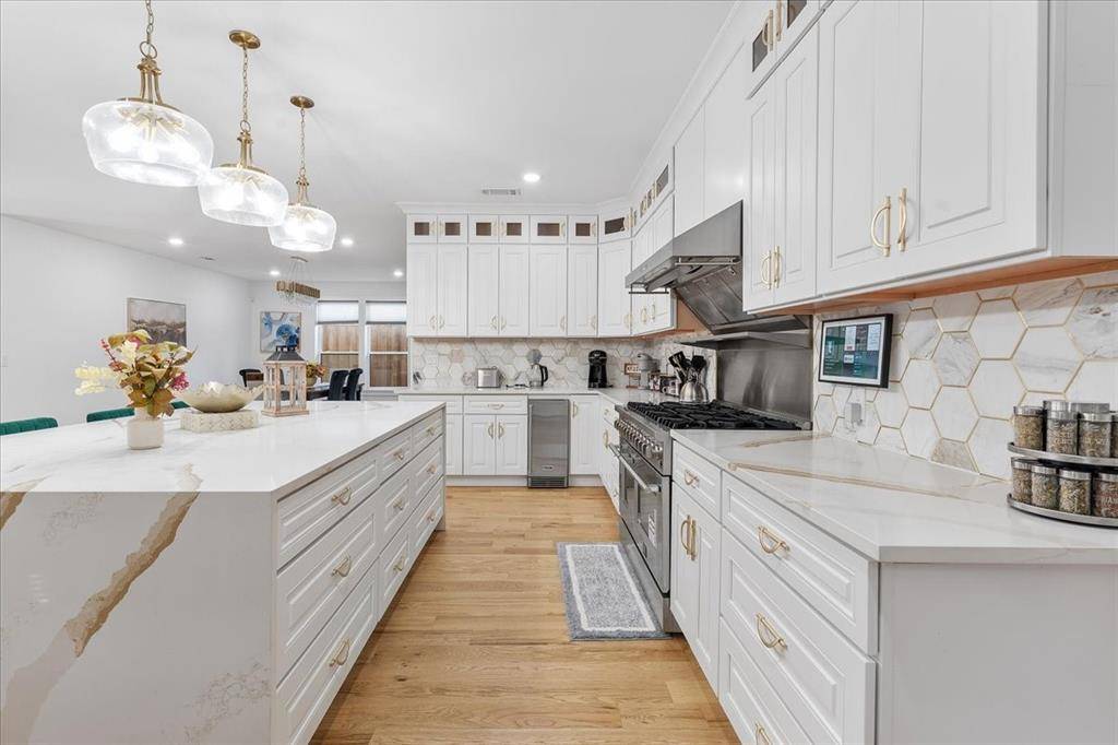 Experience the pinnacle of luxury living in this architectural masterpiece, perfectly positioned in the prestigious enclave between Bluffview and Greenway Parks. This beautiful , 5-bedroom contemporary home boasts 4,130 square feet of meticulously designed space, highlighted by soaring ceilings and white oak hardwood floors. Designed for the culinary enthusiast, the gourmet chef's kitchen features a top of the line Forno 8 burner gas range, a commercial-grade Subzero refrigerator, and a dramatic wine showroom that serves as a stunning focal point for entertaining. The open-concept layout flows effortlessly toward a private, resort-style backyard, complete with an outdoor patio grill and a high security 9 foot fence, ideal for intimate gatherings or large-scale hosting in the heart of Dallas.