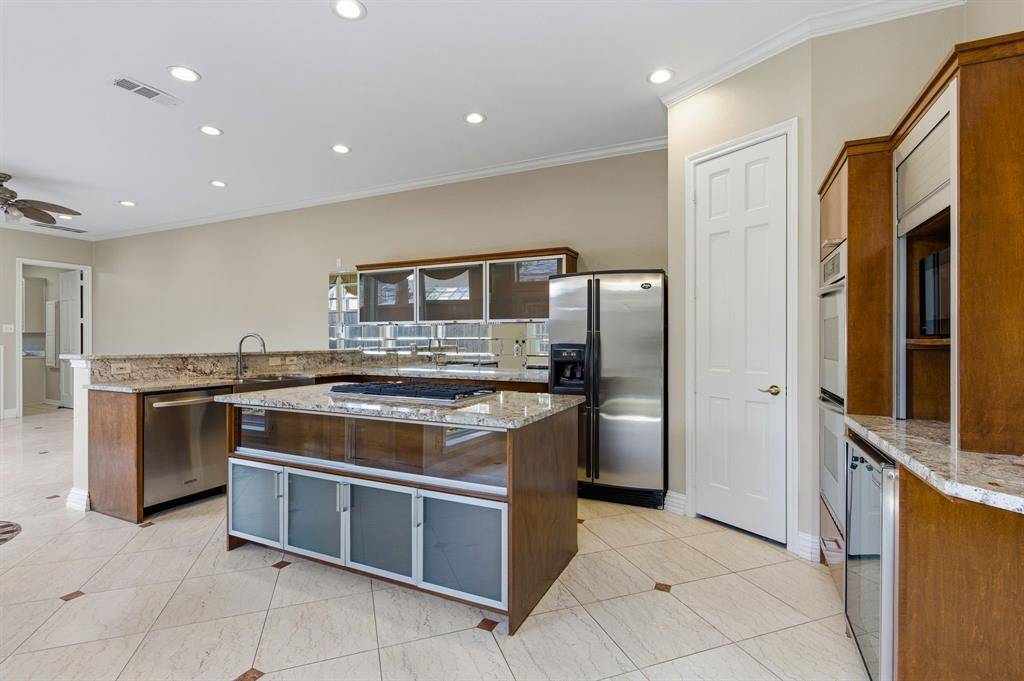 Stunning 4BD 3.5BA 2CAR SFA home in University Park! See floor plan, home is perfect for entertaining! Spacious living & dining rms w excellent natural light, bay window, hardwoods, granite, vaulted ceilings, recessed lights, ceiling fans, marble, skylights, 2 water heaters, 2 dishwashers, 3 ac units. 2living areas w gas FP. Gourmet kitchen ss appliances, Double Oven, large center island, lots of storage, open breakfast area. Huge Master has separate lounge or study or exercise area, his & hers closets. Baths new designer showers and imported Italian air bathtubs. Stackable WasherDryer, Dog Door, Wifi Boosters, Electric window coverings, wine fridge STAY in unit. Covered outdoor living w turf and 2 car attached garage w additional parking in the front.