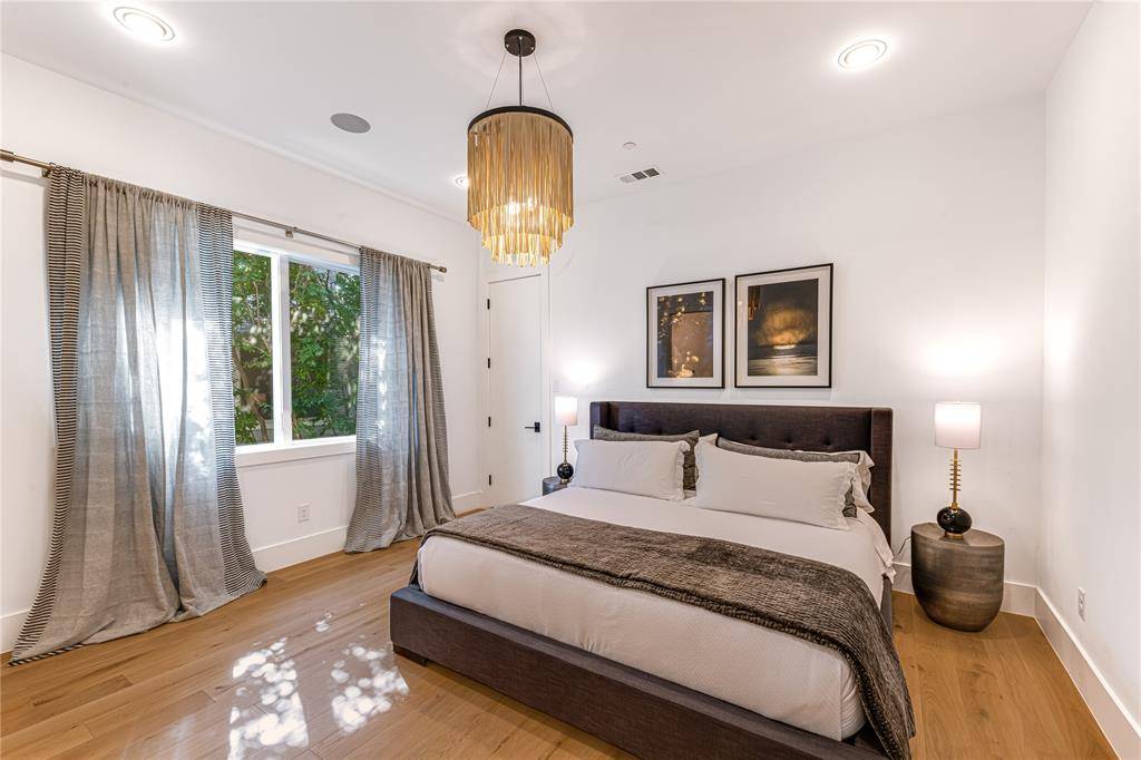 Step into luxury living with this architectural gem on an expansive 70'-wide lot in University Park—tucked behind the wall on a quiet cul-de-sac street, just a short walk to Boone Elementary in HPISD. Custom-built by Anderson Homes, this transitional modern showplace is the ultimate expression of luxury, design and craftsmanship. A dramatic La Cantina glass entry leads to soaring ceilings, natural textures, and sleek architectural lines—flooded with natural light and layered in rich designer detail. Every element is curated: from the 6” white oak floors and Jeld-Wen wood-clad windows and doors to walnut-accented cabinetry, quartz and porcelain tile surfaces and designer lighting. The seamless indoor-outdoor flow elevates both daily living and entertaining. At the heart of the home, the open-concept great room is anchored by a sleek linear fireplace and a dramatic Restoration Hardware chandelier—framed by sliding glass doors that open wide to the terrace and backyard oasis beyond. This intentional indoor-outdoor connection transforms the space, merging relaxed elegance with effortless entertaining. The great room flows into a chef's kitchen–complete with oversized quartz waterfall island, premium Thermador appliances, custom cabinetry, and a sunlit dining area. Also on the main level: a serene primary suite with a spa-worthy bath and boutique-style walk-in closet, a private guest suite, and a dedicated study. Upstairs, three spacious ensuite bedrooms connect to a large game room with wet bar and sliding doors to a covered balcony—an elevated retreat for morning coffee or evening cocktails–and a media room offers the ultimate cinematic experience. The illuminated backyard—designed by Radiant Gardens and Southern Botanical—is a private retreat with a covered terrace and open patio with cedar-shaded arbor, dramatic trickling wall fountain, and a turfed lawn ready for a future pool. Rare in both scale and sophistication, this home defines luxury in the heart of HPISD.