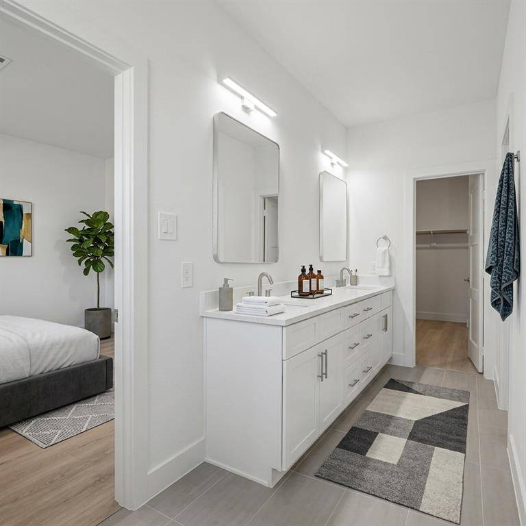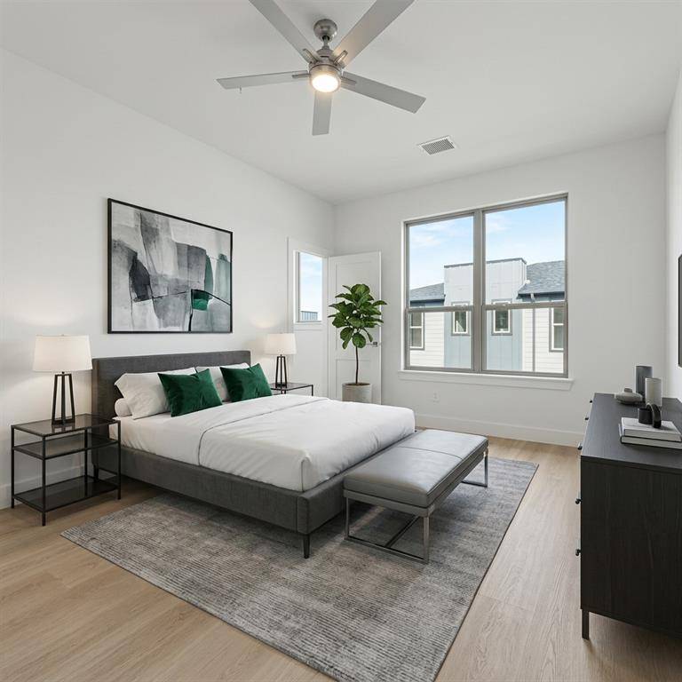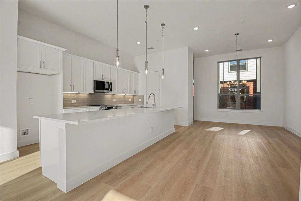 Newly completed, designer-finished townhome offering clean lines, modern luxury, and effortless style. Premium luxury vinyl plank flooring runs throughout, paired with sleek designer tile in the bathrooms and utility areas for a polished, contemporary look. The open-concept main living level impresses with 11-foot ceilings, oversized windows allowing an abundance of natural lighting. Stunning kitchen is anchored by a 12-foot quartz island, soft-close custom cabinetry, and modern hardware. The living area is elevated by a 72-inch horizontal fireplace, delivering both style and warmth. Goodland Townhomes is an exclusive, contemporary community of just 25 three-story luxury residences, thoughtfully designed for modern urban living. Prime location, just minutes from downtown Farmers Branch, this evolving area offers walkable access to restaurants, Cox Farms Market, and the DART Train system, parks, jogging & bike trails, and so much more! Photos are representative; finishes may vary by unit.