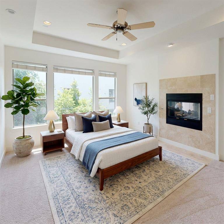 Available Mid April!Located in the desirable Lafoy Place subdivision, adjacent to West Highland Park, this charming Townhome offers modern design. Hardwood floors throughout, walls of windows that bring in natural light, and a layout that flows effortlessly. Spacious kitchen boasts granite countertops, stainless appliances, double ovens, gas cooktop with commercial grade vent hood, and wine cooler. The primary suite feels like a private retreat with tray ceiling detail, highlighted by a sleek double sided, see through fireplace and large windows for perfect natural lighting. The spa inspired ensuite bath offers dual sinks, granite countertops, soaking tub, separate walk-in shower, and two closets. Upstairs loft space provides flexibility for a home office, library, fitness area, or second living space. All secondary bedrooms are oversized with ample storage. Two bedrooms have a Jack and Jill bathroom! Private rear and side yard create outdoor space without high maintenance. Two-car garage. Prime location with quick access to retail, dining, and much more! Modern design, functional layout, and an unbeatable location, this one delivers!
