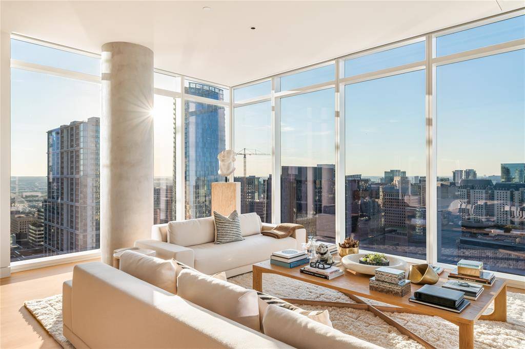 Residents enjoy over 17,000 square feet of amenities, including 24-hour valet and concierge, infinity-edge lap pool, fitness studio, wine storage, private dining spaces, dog run, house car, and in-residence dining and room service via the Hall Arts Hotel and Astra Restaurant.