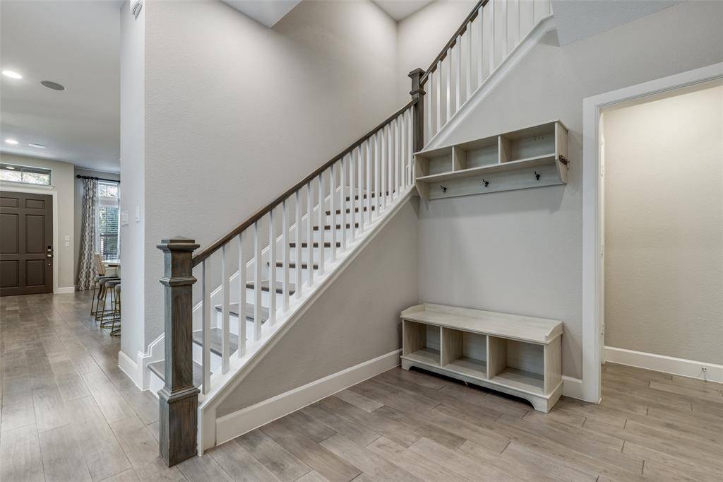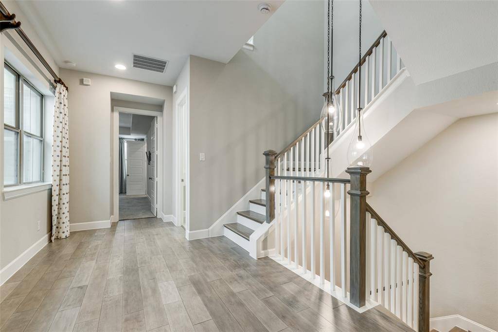 The first floor features impressive 10-foot ceilings and engineered hardwood flooring that continues up the staircase, creating a seamless and sophisticated feel. The open-concept kitchen is a true centerpiece, showcasing quartz countertops, a designer backsplash, and stainless steel appliances—including a new cooktop. The refrigerator conveys with the home, adding even more value.