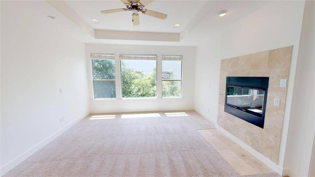 Located in the desirable Lafoy Place subdivision, adjacent to West Highland Park, this charming Townhome offers modern design. Hardwood floors throughout, walls of windows that bring in natural light, and a layout that flows effortlessly. Spacious kitchen boasts granite countertops, stainless appliances, double ovens, gas cooktop with commercial grade vent hood, and wine cooler. The primary suite feels like a private retreat with tray ceiling detail, highlighted by a sleek double sided, see through fireplace and large windows for perfect natural lighting. The spa inspired ensuite bath offers dual sinks, granite countertops, soaking tub, separate walk-in shower, and two closets. Upstairs loft space provides flexibility for a home office, library, fitness area, or second living space. All secondary bedrooms are oversized with ample storage. Two bedrooms have a Jack and Jill bathroom! Private rear and side yard create outdoor space without high maintenance. Two-car garage. Prime location with quick access to retail, dining, and much more! Modern design, functional layout, and an unbeatable location, this one delivers!