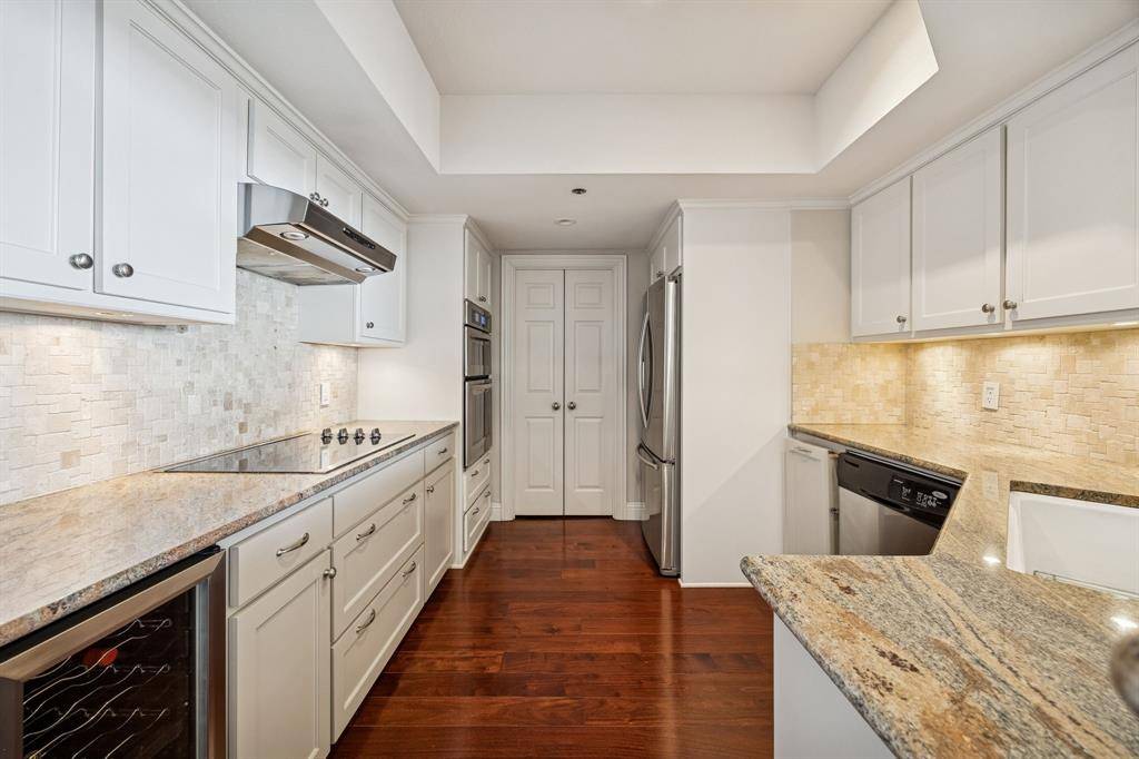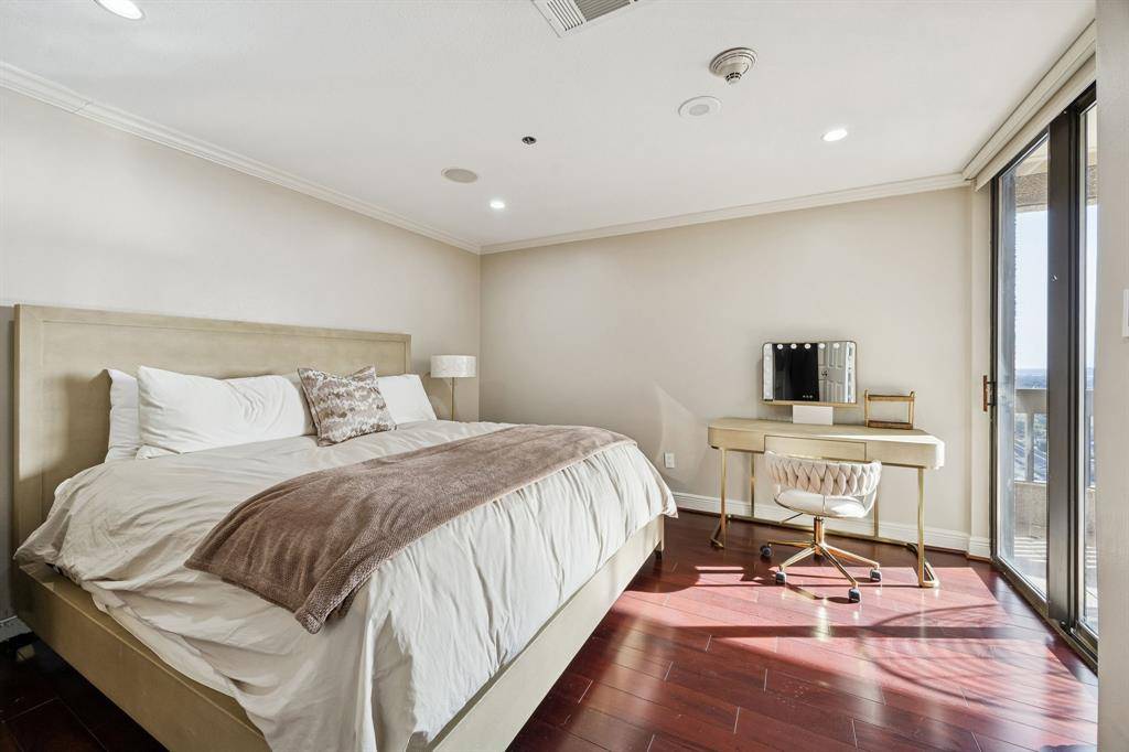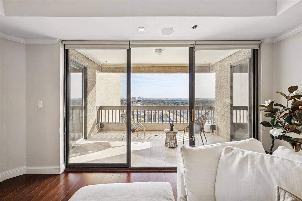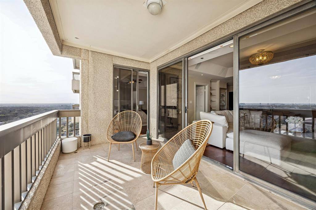 Worry free luxurious high-rise living with HPISD! AMAZING DOWNTOWN VIEWS!! This beautiful 2 Bedroom, 2 Bath condo has it all. Multiple upgrades include wine refrigerator, wood floors throughout, built in speakers, marble bathroom and much more. The great size balcony is perfect to enjoy stunning downtown and sunset views. Building amenities include: Valet Parking, 24-7 front desk, clubroom pool, private cabanas, putting green, shuffle board, fitness center, large covered outdoor grill space next to the pool. Amazing location within walking distance to great restaurants & shopping.2 Parking Spaces and Storage.