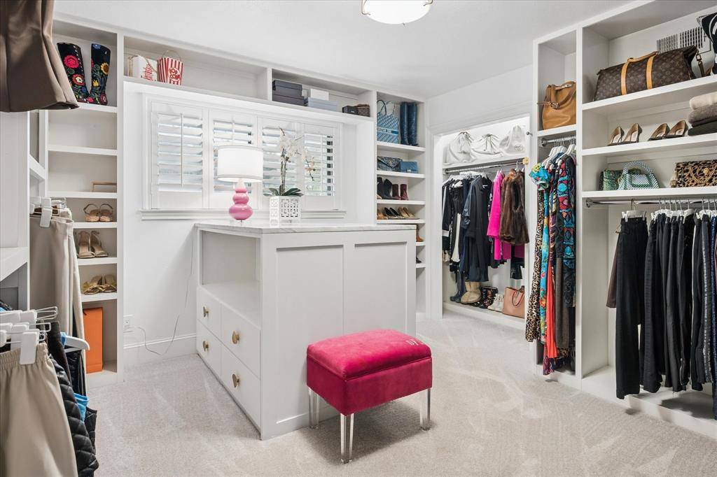 The updated kitchen is a true centerpiece, featuring a large island, abundant storage, and stylish finishes that invite culinary creativity. The flexible floor plan offers a split fourth bedroom and bath, providing ideal privacy for guests or teens. Currently, one of the secondary bedrooms is transformed into a stunning custom wardrobe, this space is a fashion lover's dream but can easily function as a traditional bedroom if desired.