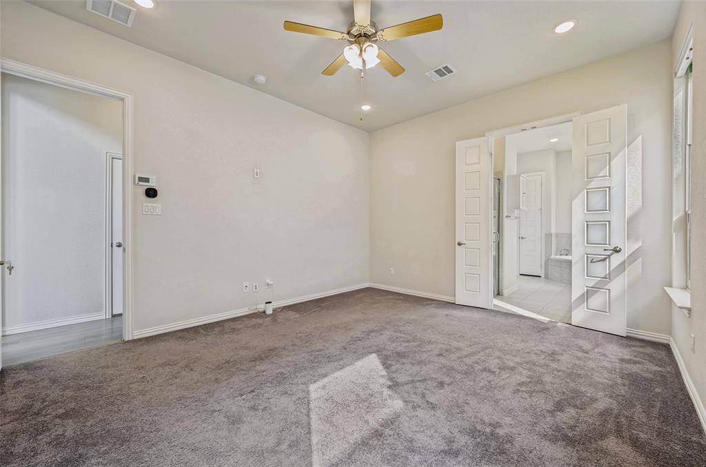Modern design, natural light, and an unbeatable location come together in this stunning Heritage Creek residence in the heart of Irving. This meticulously maintained two story home offers 2,245 square feet of thoughtfully designed living space with soaring ceilings, oversized windows, and an open concept layout that feels both elevated and inviting. The spacious living area is anchored by a cozy gas fireplace and flows seamlessly into a chef inspired kitchen complete with quartz countertops, crisp white cabinetry, a sleek cooktop, walk in pantry, and an oversized island made for hosting, gathering, and everyday living. Privately situated on the main level, the primary suite is a true retreat featuring dual vanities, a glass enclosed shower, and a relaxing soaking tub designed to help you unwind at the end of the day. Upstairs you will find a dedicated office with modern glass panel accents, an oversized game and media room perfect for entertaining, two generously sized secondary bedrooms connected by a Jack and Jill bath, and the convenience of a second floor laundry room. The washer, dryer, and refrigerator will convey with the sale, making this a true move in ready opportunity. Energy efficient features including radiant barrier roofing, advanced insulation, efficient HVAC, and double pane windows help keep utility costs low. With no front facing neighbors and peaceful greenbelt views, you get both privacy and scenery right outside your door. Just minutes to Highway 183 and the President George Bush Turnpike, and approximately a 15 minute straight shot to the Design District, Victory Park, and Oak Lawn, you are perfectly positioned for quick access to Dallas dining, nightlife, and entertainment. Close to Las Colinas, Toyota Music Factory, DFW International Airport, and Dallas Love Field, commuting and travel are effortless. Style, function, efficiency, and prime accessibility all in one exceptional home. Schedule your private tour and experience it in person.
