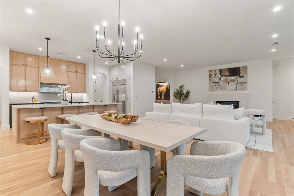 Discover the latest dwelling by Avant Group Home Builders, nestled in the coveted Mockingbird Elementary attendance zone. This Scandinavian Farmhouse-inspired gem seamlessly blends suburban serenity with urban vibrancy, offering the Dallas lifestyle you've always dreamed of. Step through the grand foyer, where soaring 20-ft ceilings flood the space with natural light, illuminating pristine white oak hardwood floors that set the tone. To your side, an arched doorway reveals a versatile suite, ideal for a private guest retreat or productive home office.