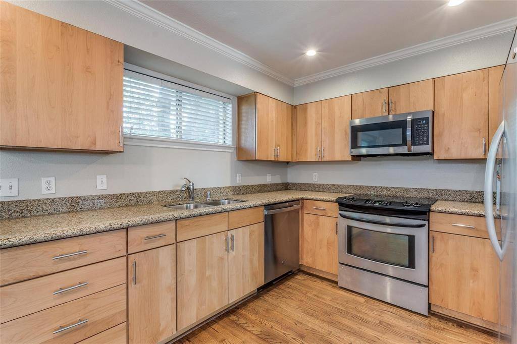 Charming Mid-Century Modern Condo in a Prime Dallas Location. Cozy and stylish 1st-floor end-unit condo in a quiet, gated mid-century community. This beautifully updated home features hardwood floors, crown molding, and custom paint throughout, creating a warm and inviting living space. The kitchen includes granite countertops, updated cabinetry with new hardware, and a new stainless steel refrigerator, along with all appliances included, plus a full-size washer and dryer for added convenience. Please note: the updated refrigerator and cabinet hardware are not reflected in the current listing photos. Both bathrooms have been tastefully updated, and the end-unit layout offers great natural light and additional privacy. Step outside to enjoy your private fenced yard with low-maintenance astro turf in both the front and back, perfect for relaxing, entertaining, or pets. The super cute, well-maintained complex offers a peaceful atmosphere and features gated entry, a large swimming pool, a tranquil Zen garden, and community grilling areas. The location is fantastic—just minutes from Inwood Village, close to Love Field Airport, and with easy access to the Dallas North Tollway, Lemmon Avenue, and many of Dallas' best restaurants, shopping, and entertainment. For added convenience, the owner is willing to include utilities for a flat monthly fee of $250, which covers utilities and Wi-Fi. Move-in ready, full of charm, and perfectly located, this one is a must see!
