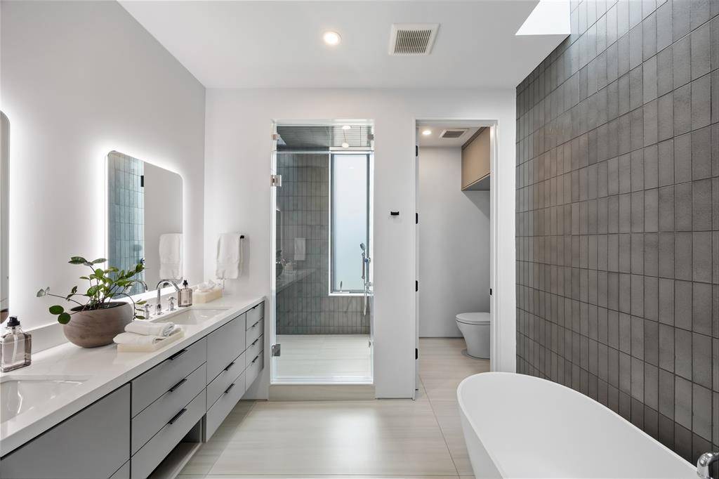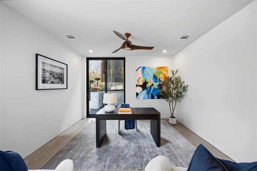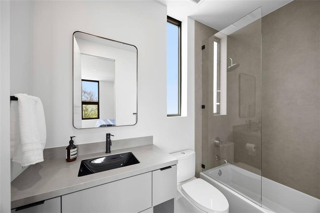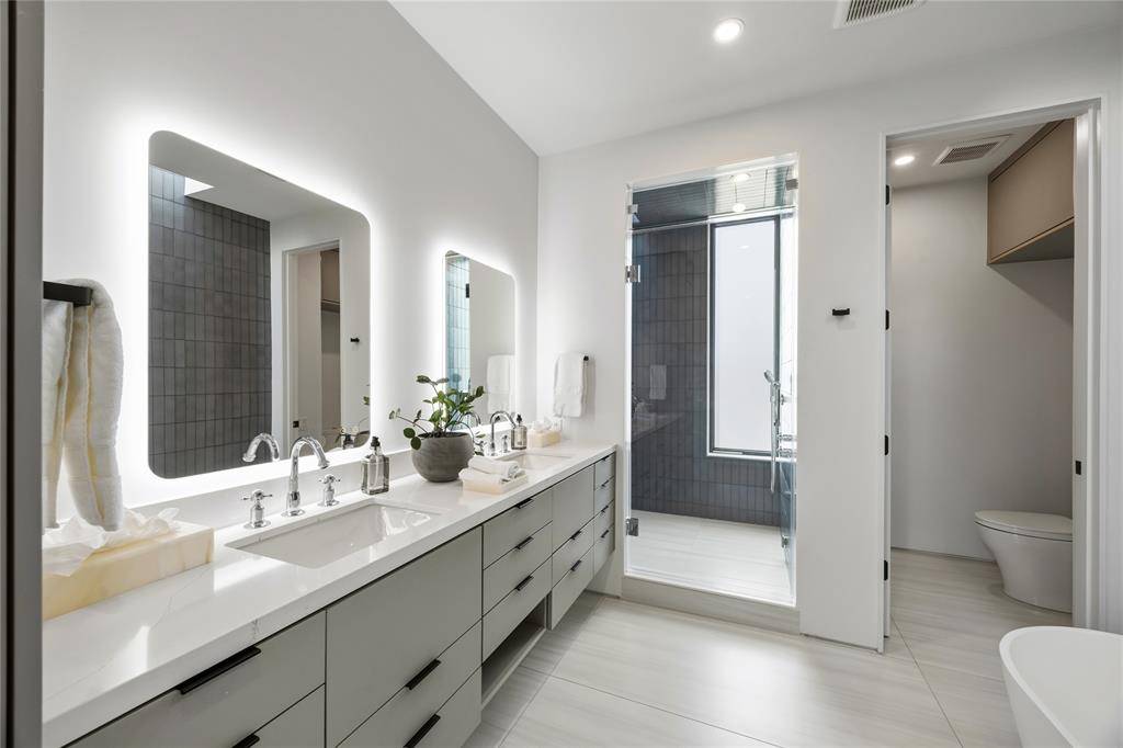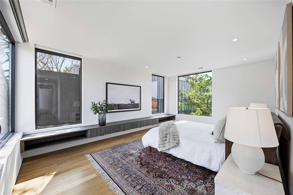Designed by acclaimed architects Far + Dang, this striking contemporary residence at 3514 Overbrook Drive was custom built in 2024 and offers 3,243 square feet of refined lock and leave living across three levels, all serviced by a private elevator. A dramatic recessed Brazilian hardwood façade introduces interiors filled with natural light, wide plank white oak floors, gallery style walls, and floor to ceiling north facing windows. The second level is designed for entertaining with an open living area that flows seamlessly to an expansive covered balcony. The chef's kitchen features Sub Zero and Dacor appliances, Liebherr wine refrigeration, custom cabinetry, honed stone surfaces, and an oversized island. The top floor primary suite offers serene treetop views and a spa inspired bath with steam shower and soaking tub. Ideally located just steps from the Katy Trail and Knox Street's premier dining, boutiques, and cafés.