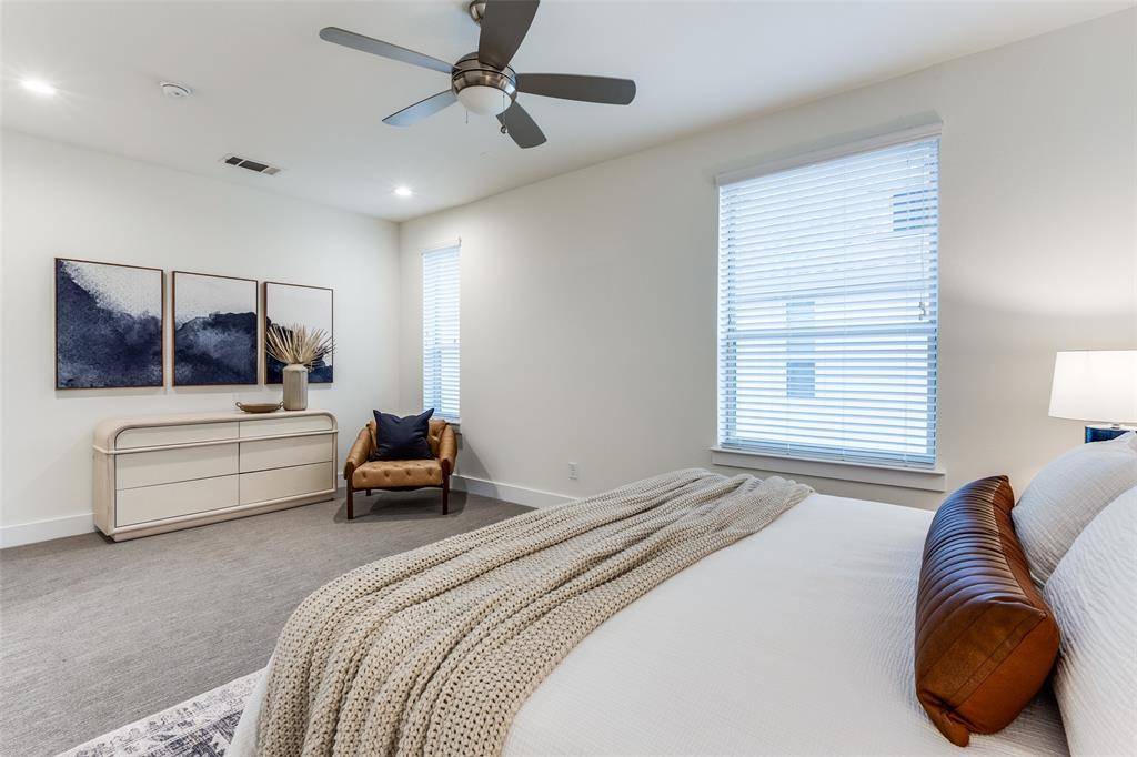 Bryan Place gem with low HOA dues, fresh paint, new carpet, custom closet upgrades, & added natural light thanks to its CORNER unit position make this pristine townhome a truly rare find! A block away from picturesque Exall Park, you'll find space to spread out with 2 bedrooms, 2.5 baths, 2 living areas, PLUS a rooftop deck. Stepping inside, you're greeted by oak hardwoods that lead you up to the open-concept main level with living, dining, & kitchen. The perfect space for entertaining, the kitchen is equipped with center island, granite counters, & custom cabinets. Upstairs you'll discover an oversized primary suite & luxurious bath that boasts separate tub-shower & dual sinks. Adjacent to the primary suite is a large 2nd living area with a balcony. The 2nd bedroom is privately situated downstairs with ensuite bath. Topping things off is the large rooftop deck, perfect for enjoying your morning coffee. New HVAC 2026. New roof 2022.