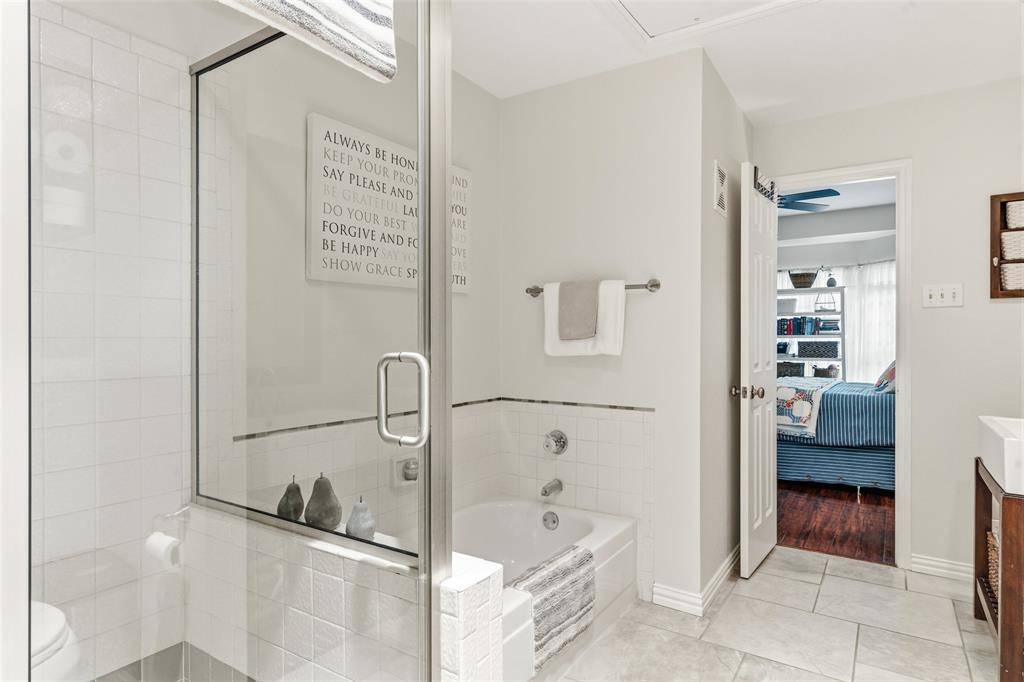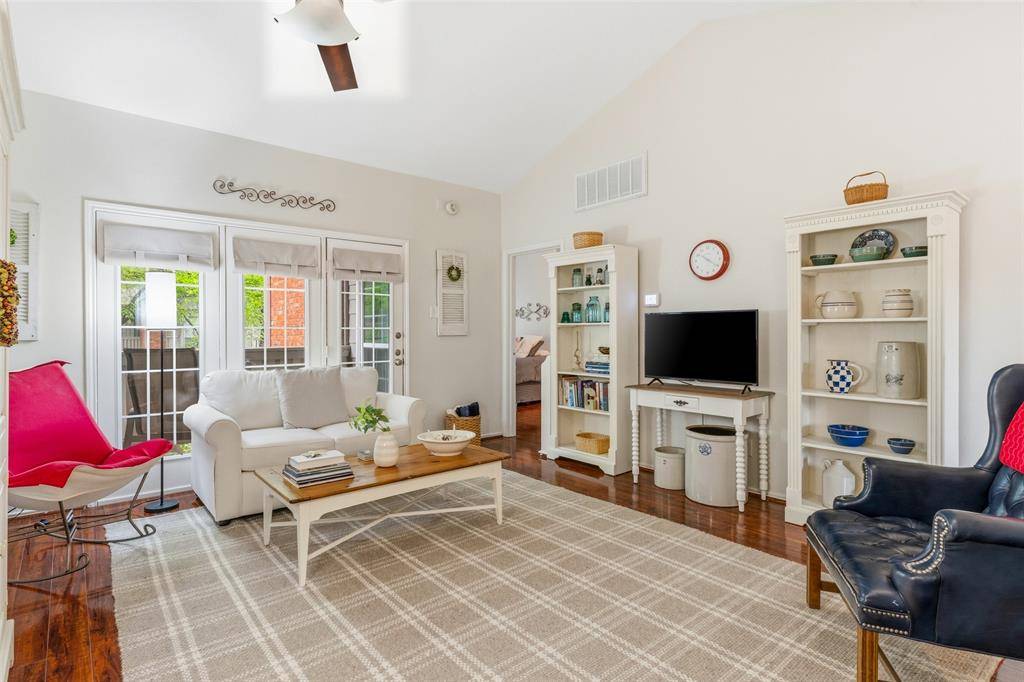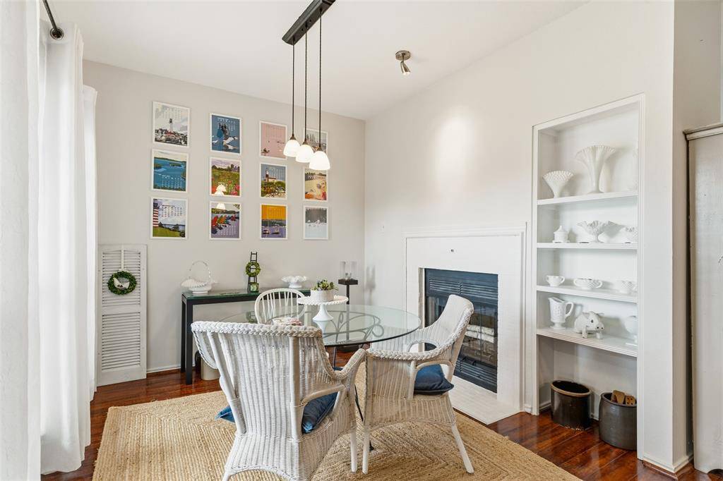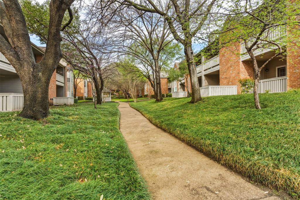 Tucked inside a gated, tree-lined community, this beautifully maintained 2-bedroom, 2-bath condominium offers comfort, charm, and an unbeatable location in the heart of Dallas. Ideally positioned near the center of the community, this inviting home enjoys peaceful courtyard views from the deck and a front outlook framed by mature trees with glimpses toward the Dallas skyline. Inside, the spacious living room welcomes you with a vaulted ceiling, rich character, built-in bookcase, and French doors that open to the private deck, creating a bright and airy atmosphere. A striking two-sided fireplace serves as a warm focal point, shared between the living and dining areas for effortless everyday living and entertaining. The functional floor plan includes two bedrooms and two full baths, offering flexibility for guests, a roommate setup, or a home office. Thoughtful updates add value and peace of mind, including replaced windows, a new washer and dryer, a new dishwasher, exterior AC unit replaced in 2021, and interior air handler replaced in 2026. Residents enjoy access to exceptional community amenities, including a clubhouse with fitness center, two pools, and two hot tubs, along with a covered parking space and additional guest parking. Conveniently located with quick access to I-75, 635, and the Dallas North Tollway, this Preston Hollow gem offers the perfect blend of privacy, convenience, and low-maintenance living in one of Dallas's most desirable areas. Schedule your showing today!