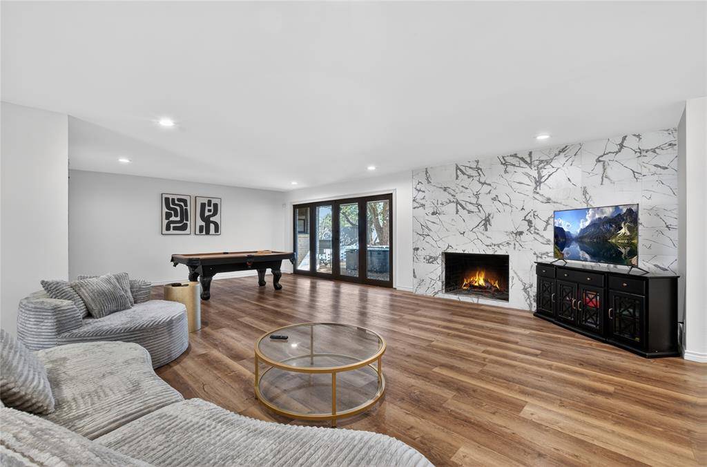 Designed for both grand entertaining and everyday comfort, the heart of the home features a beautifully equipped chef's kitchen-large island, 48 in professional gas range, wine refrigerator, and stainless appliances that flows seamlessly into the expansive living areas complete with pool table and large dining area and double glass doors to the patio. Retreat to the private primary suite downstairs, a tranquil sanctuary boasting a cozy built-in fireplace, multiple closets and a spa like primary bath, as well as floor-to-ceiling views and private access to the turfed backyard.