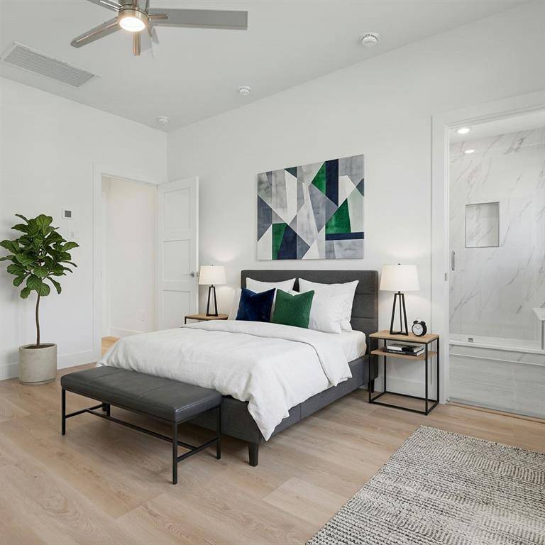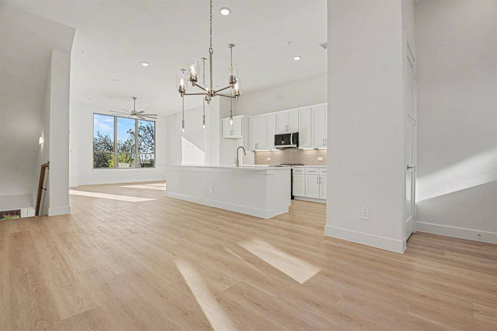 Available for Immediate move in! Newly completed, designer-finished townhome offering clean lines, modern luxury, and effortless style. Premium luxury vinyl plank flooring runs throughout, paired with sleek designer tile in the bathrooms and utility areas for a polished, contemporary look. The open-concept main living level impresses with 11-foot ceilings, oversized windows allowing an abundance of natural lighting. Stunning kitchen is anchored by a 12-foot quartz island, soft-close custom cabinetry, and modern hardware. The living area is elevated by a 72-inch horizontal fireplace, delivering both style and warmth. Goodland Townhomes is an exclusive, contemporary community of just 25 three-story luxury residences, thoughtfully designed for modern urban living. Prime location, just minutes from downtown Farmers Branch, this evolving area offers walkable access to restaurants, Cox Farms Market, and the DART Train system, parks, jogging & bike trails, and so much more! Photos are representative; finishes may vary by unit.
