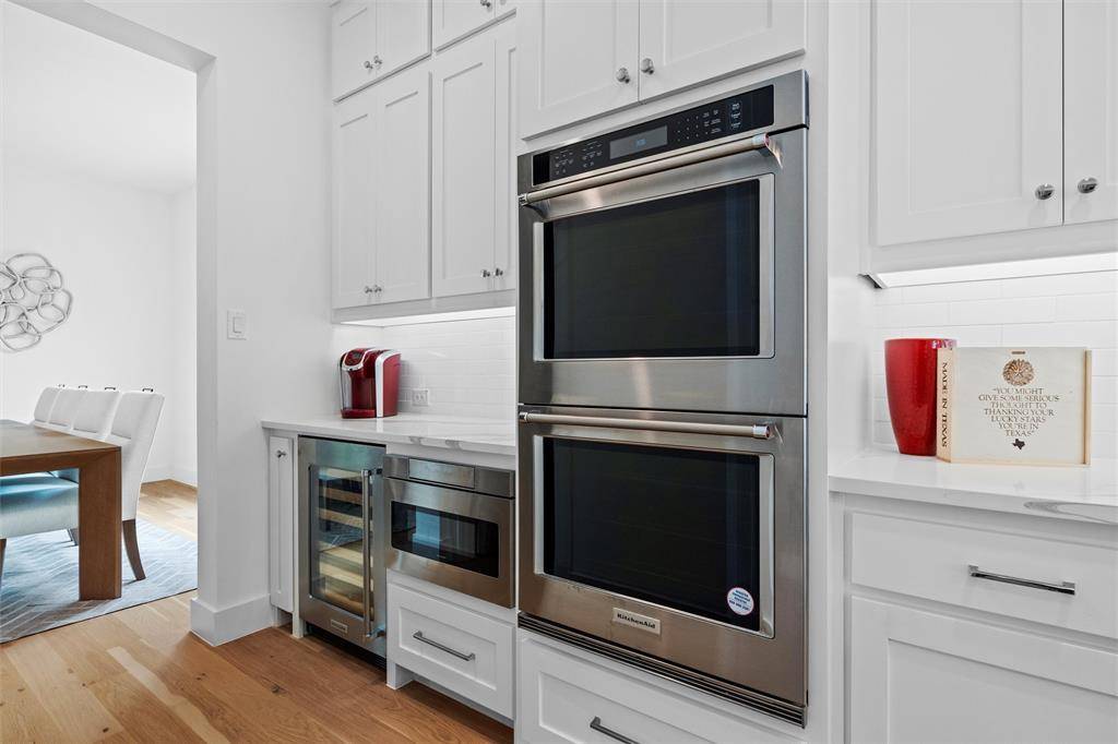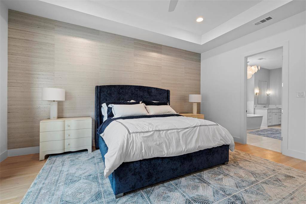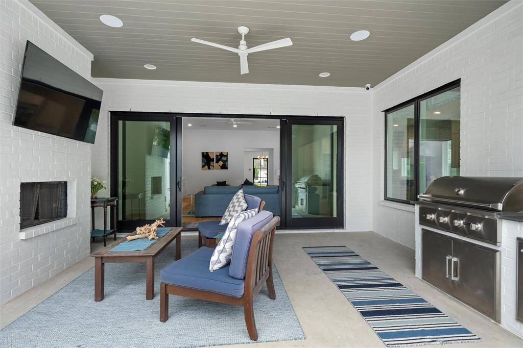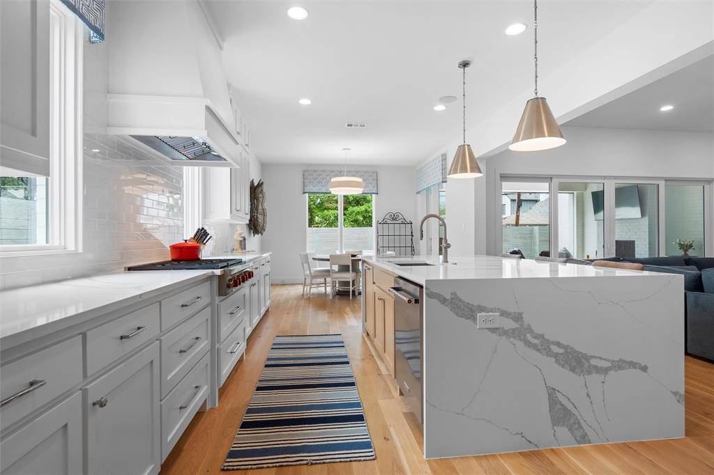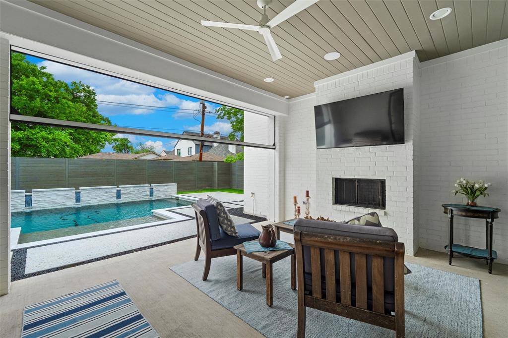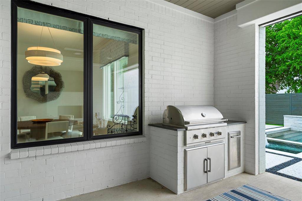 A transitional-style residence showcasing elegance & exquisite finishes. In the prestigious Bird Streets, it offers beautifully honed walls, high-end appliances (Kitchen Aid, Wolf), designer lighting (Visual Comfort, Anteriors), Stroheim wallcoverings, & Emtek hardware. The 4-bed, 4-bath home features a gourmet kitchen with a double waterfall island, office has beamed ceiling, & downstairs primary suite with walk-in closet & quartz vanity. An outdoor private sanctuary offers a covered patio, outdoor kitchen, heated pool & spa, a tranquil waterfall, & a Phantom retractable screen. The open-concept design is flooded with natural light. Smart Home features: Qolsys security, Speco video surveillance, pro AV wiring, & 8 Beale Street in-ceiling speakers. Exceptional craftsmanship throughout: wide plank hardwoods, Carrara marble floors, Marvin windows, & designer textiles. Quality shines throughout! Close to Inwood Village, Lovers Lane shops & dining, Highland Park Village, & Love Field.