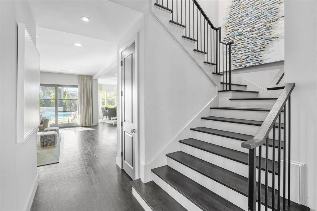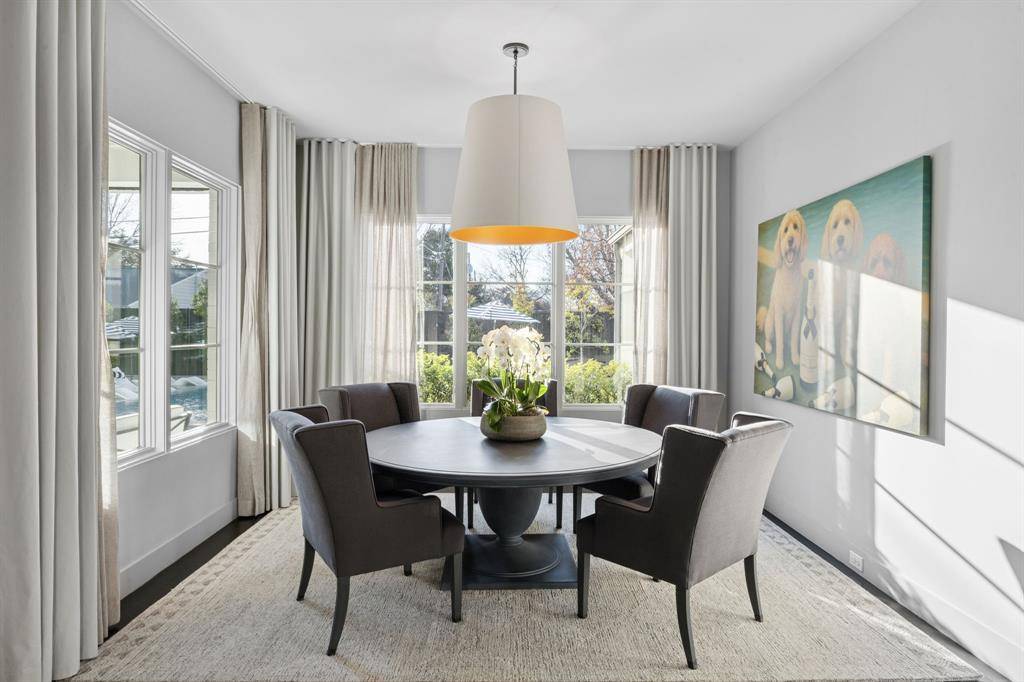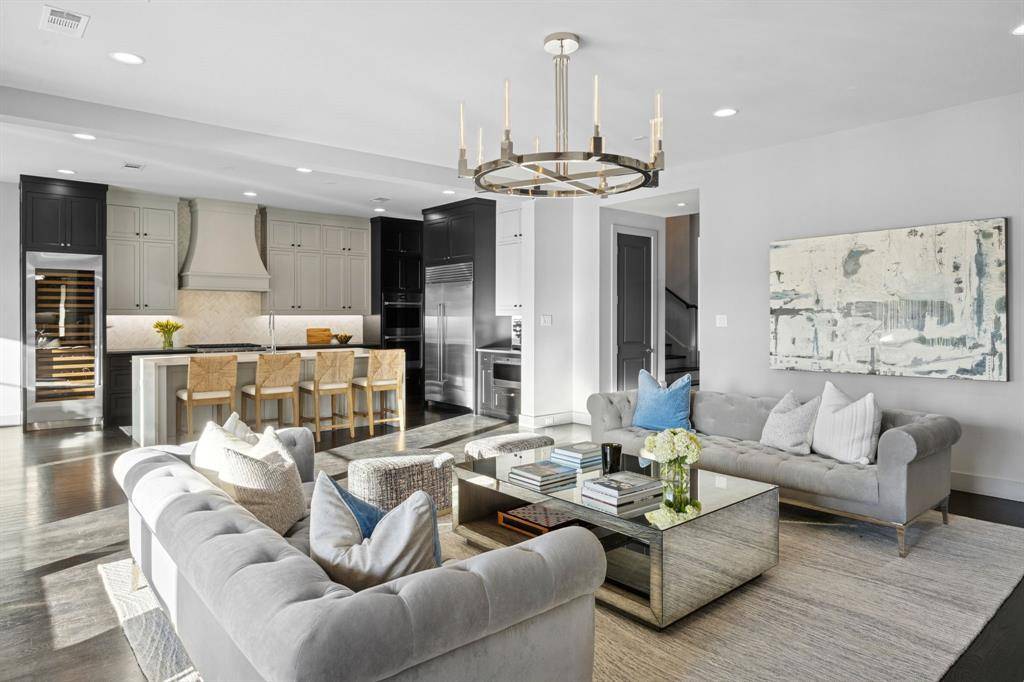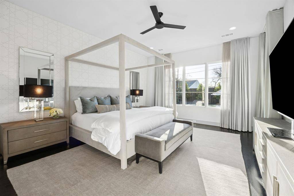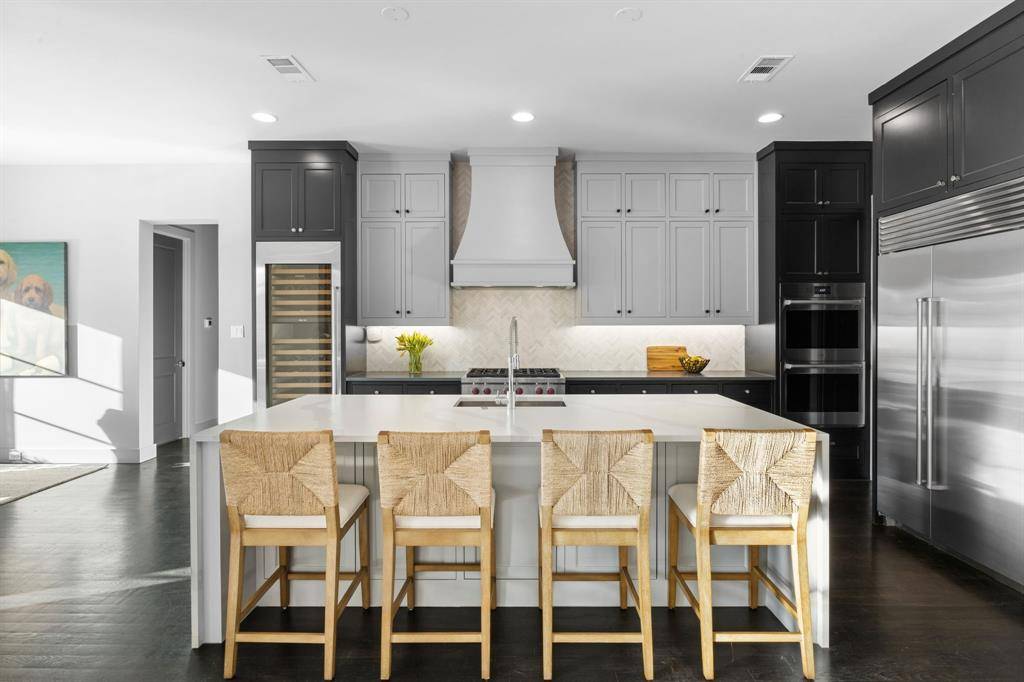 Nestled on a landscaped .29-acre lot in the coveted Bird Streets of Dallas, this transitional residence was completed in 2022 and enhanced with post-construction upgrades. Spanning 4,044 square feet, the home offers four bedrooms, four full baths, and one half bath. Designed for both entertaining and everyday living, the backyard features a heated pool and spa, turf lawn, built-in grill, and covered living area. A brick and stone façade, metal roof, and privacy hedges create a strong first impression. Inside, hardwood floors, floor-to-ceiling windows, and sliding doors bring in natural light and connect indoor and outdoor spaces. The glass and iron front door opens to a foyer with custom lighting, flanked by a study with built-ins. The living room, anchored by a gas fireplace, opens to the covered loggia. Designer lighting adds warmth throughout. The chef's kitchen features a quartz island, marble backsplash, and premium appliances, including a Wolf range and ovens, SubZero refrigerator, wine fridge, and Asko dishwasher. A walk-in pantry and coffee bar add convenience. The dining area overlooks the pool and yard. The first-floor primary suite offers backyard views and a marble bath with dual vanities, soaking tub, oversized shower, and custom closet. A downstairs guest suite and a family room with wet bar provide additional space. Upstairs, two ensuite bedrooms flank a landing ideal for a lounge or den. Outdoors, the covered loggia with fireplace and screen allows year-round use, along with a grilling patio and built-in grill. The pool and spa are surrounded by turf and landscaping with exterior lighting. The two-car garage includes epoxy flooring and storage. Additional features include Lutron lighting, app-controlled pool systems, three HVAC units, and a tankless water heater. Conveniently located near major roads and the private school corridor.