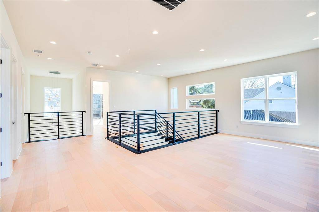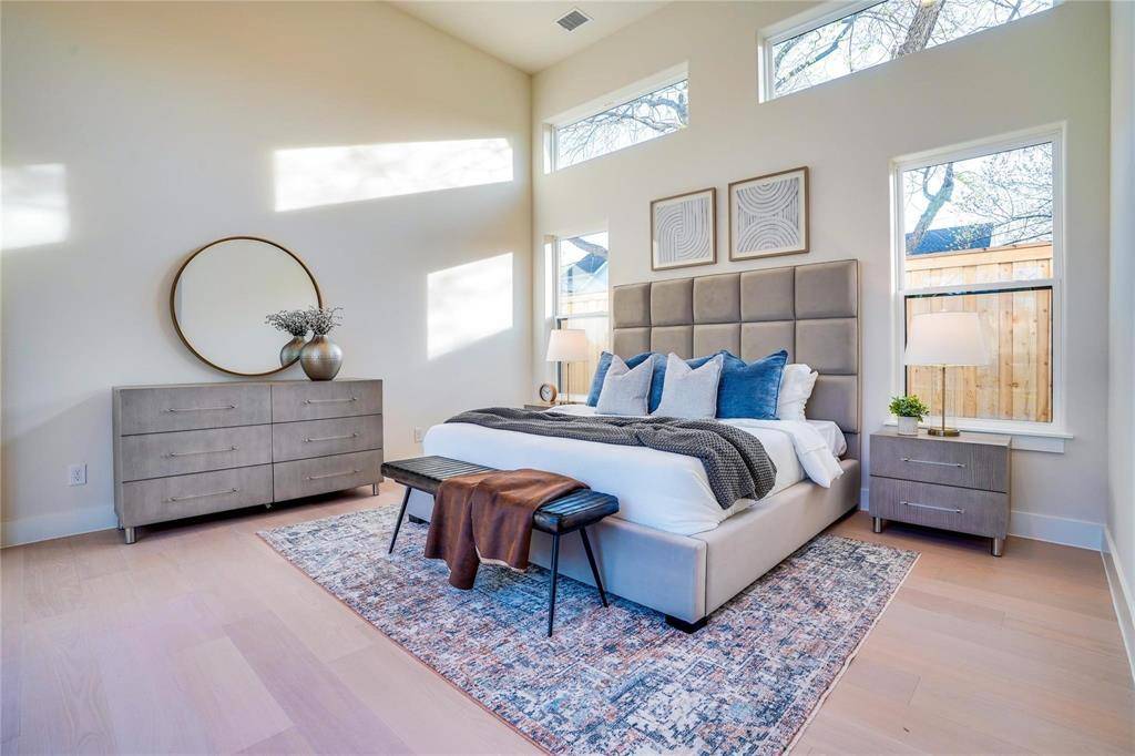 Sleek new contemporary custom home. Open concept with luxury finishes. 4-bedroom, 5-bathroom. A spacious study at the front of the house ensures a quiet work environment with beautiful natural light. Cooking in this luxury chef's kitchen will bring joy while entertaining friends and family. The quartz countertops and high-end appliances reflect the detail put into this home. It also includes a 48-inch cooktop and premium hood. You will love the primary suite with it's beautifully designed custom closet. Each bed has its own bathroom making this extremely roommate friendly! Engineered hardwood flooring throughout. You will notice the energy efficiency in the home with it's spray foam insulation. Located in the desirable Mockingbird Park South neighborhood, close to Dallas Love Field airport and medical district.