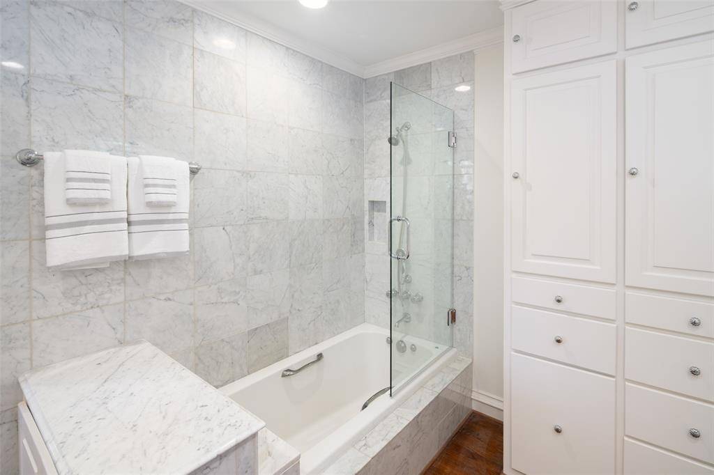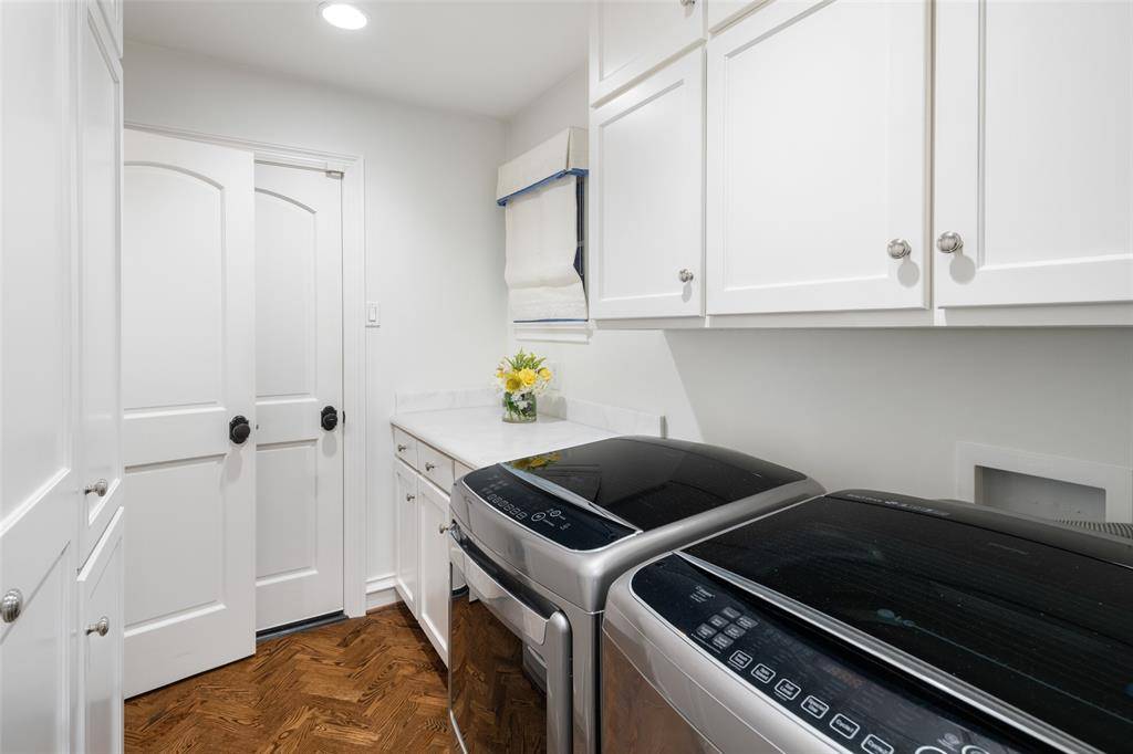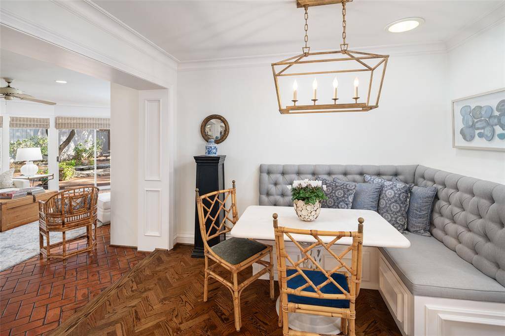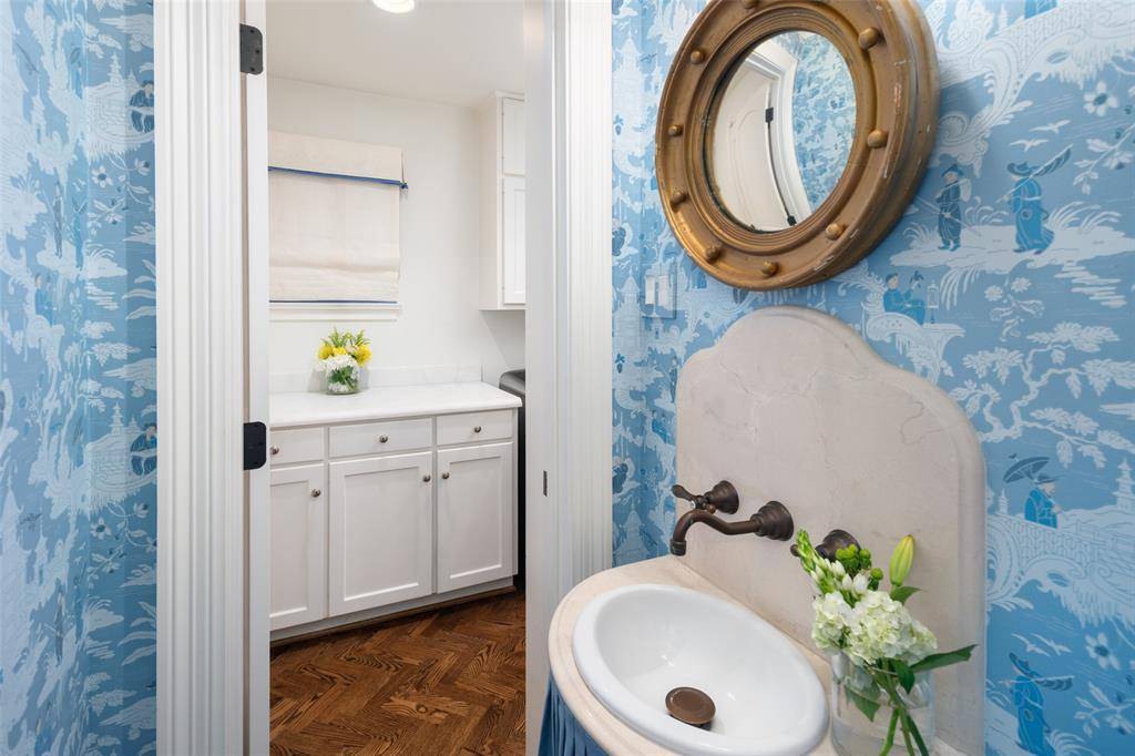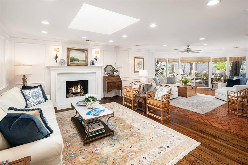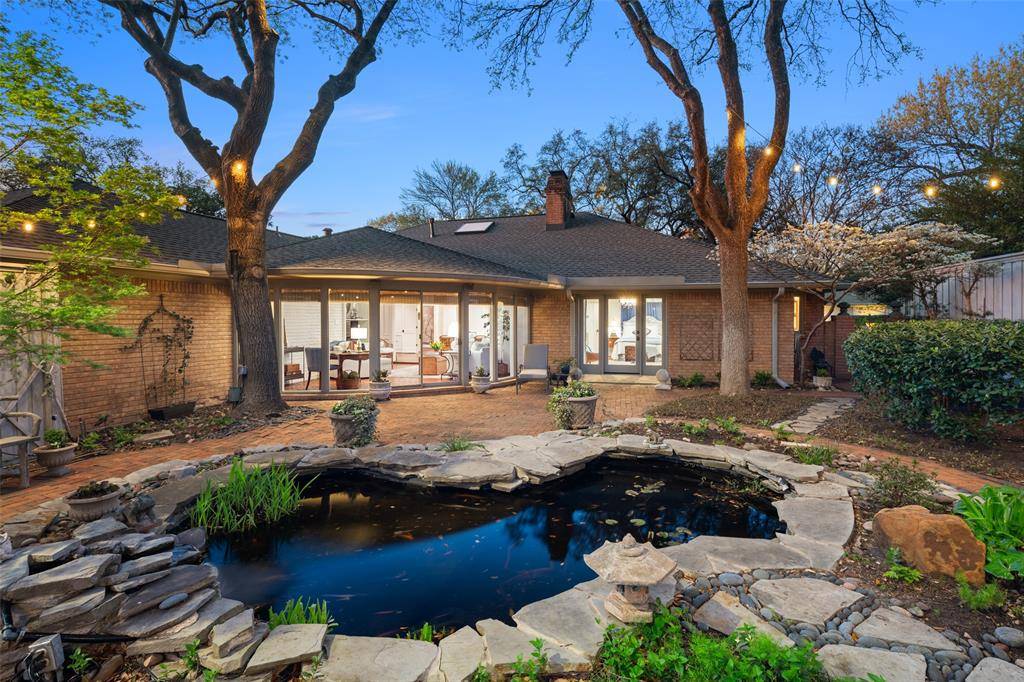 Beautifully renovated 3 bedroom, 2.5 bathroom, 2 car garage home on almost a quarter-acre lot. This elegantly renovated home is nestled beside West Highland Park in one of Dallas's most sought-after neighborhoods. Conveniently located, and within walking distance to Highland Park Village, which has many fine dining restaurants, and luxury shopping. Just a short stroll away through the timeless and expansive neighborhoods are some impeccable parks and access to all that Highland Park Village has to offer. This home was classically designed and renovated; kitchen updates include Wolf brand gas cooktop and oven, Carrara marble counters, lighted, custom kitchen cabinetry with soft-close drawers, Baldwin cabinet hardware, farm sink with Newport Brass fixtures. Breakfast area features Carrara marble waterfall along the built-in banquette. Formal dining room showcases an antique mirrored wall and designer wallpaper by Gracie. Oak and herringbone patterned hardwood and marble flooring through-out the home accented with custom crown molding and paneling. Two open-concept family rooms with skylight, fireplace with gas logs, and sconces, with a wall of windows that allow you to enjoy the lushly, landscaped, garden under a canopy of mature trees, with a large brick patio area for entertaining guests. Home also features a large primary bedroom suite with French doors which open onto the outdoor living oasis. Luxurious guest bedroom suite is a dreamy design in blue and white designer wallpaper by Gracie, and has a lighted, walk-in closet designed by California Closets, and a cedar lined closet in hallway for storage of your woolen wardrobe. The home has an oversized garage with electric gate to the driveway & has a front circular driveway for guests. Has a Trane HVAC system. The roof was replaced in November 2024, and the water heater was replaced in 2025. Located within a short drive to Highland Park Village, Inwood Village, access to the Tollway and Love Field Airport.