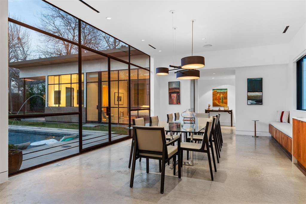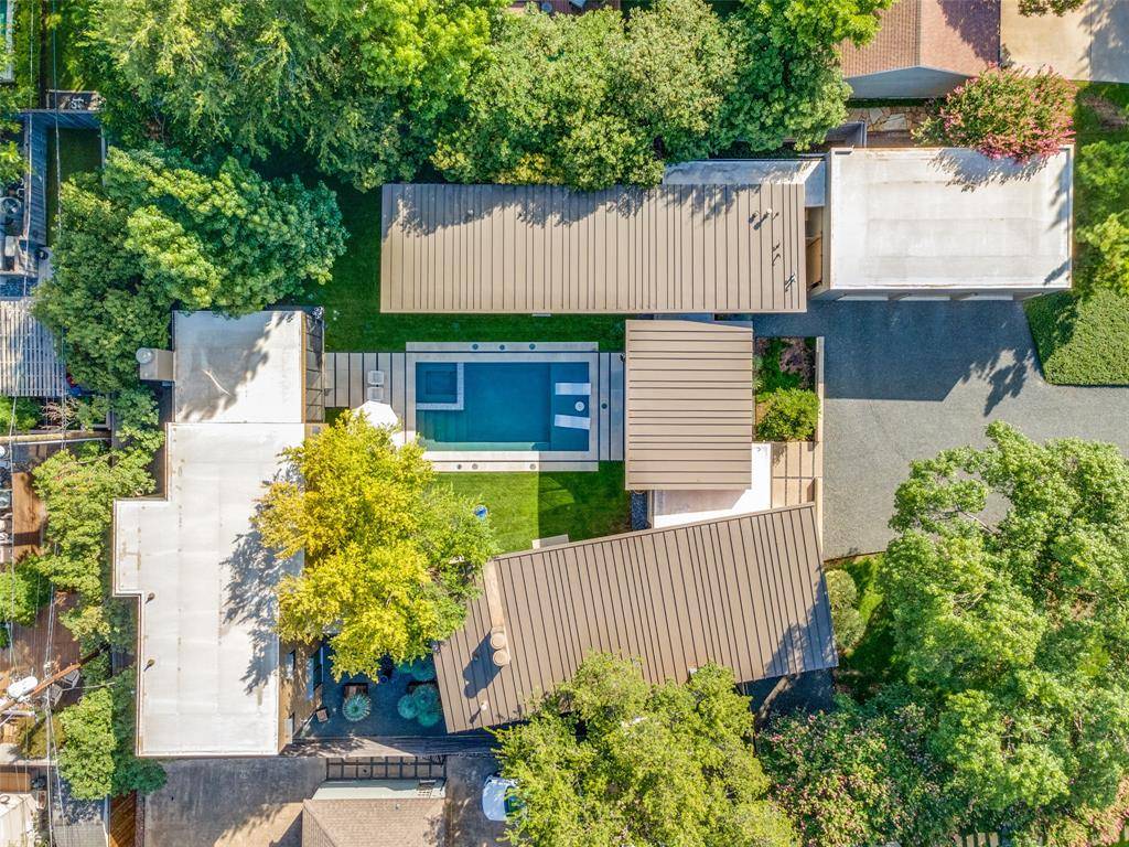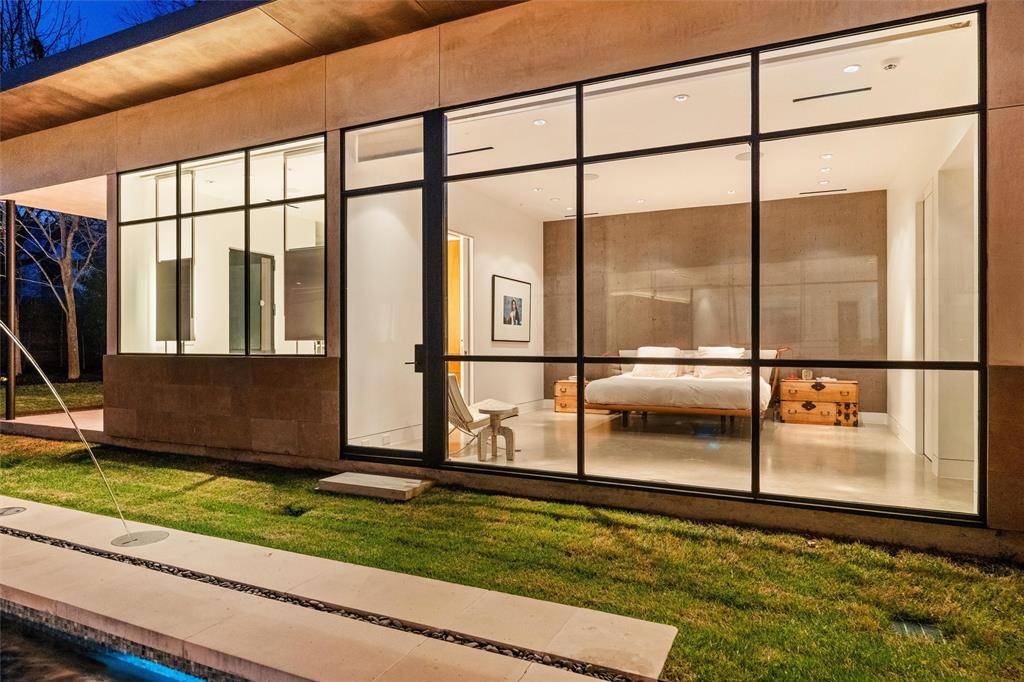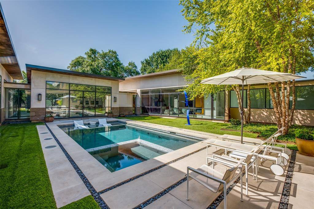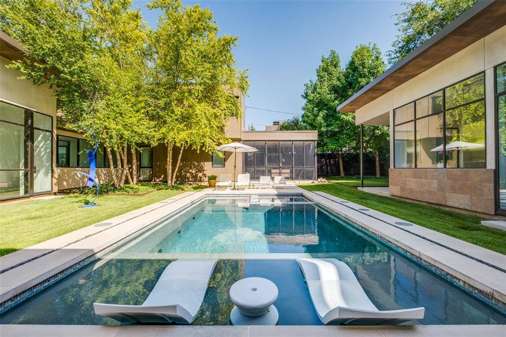 Designed by award winning architects Mitchell and Garman, this striking modern residence features five interconnected structures arranged around a tranquil courtyard and resort style pool, creating complete privacy in the heart of Dallas. Glass corridors, a standing seam metal roof, and expansive steel framed windows bring in natural light while maintaining a strong connection between indoor and outdoor living. Sophisticated interiors include open living spaces with polished concrete floors, walnut cabinetry, custom millwork, and a sleek fireplace. The chef's kitchen offers an oversized island, Wolf appliances, a 70 bottle Sub Zero wine refrigerator, and generous seating for gathering and entertaining. The primary suite provides a peaceful retreat with garden views and spa inspired finishes, while two secondary bedrooms with ensuite baths sit on the first floor. Upstairs includes two additional bedrooms and a flexible second living area. Smart home features include a Control4 system supporting comfort, lighting, climate, and security throughout the home, while multiple outdoor living areas extend the living space into the beautifully designed grounds. A screened in patio with fireplace creates a comfortable setting for year round enjoyment, while sculptural landscaping, a water feature, and thoughtfully designed courtyard spaces create a calm Zen like atmosphere throughout the property. A three car garage and gravel drive complete this architectural masterpiece set within one of Dallas's most desirable locations.