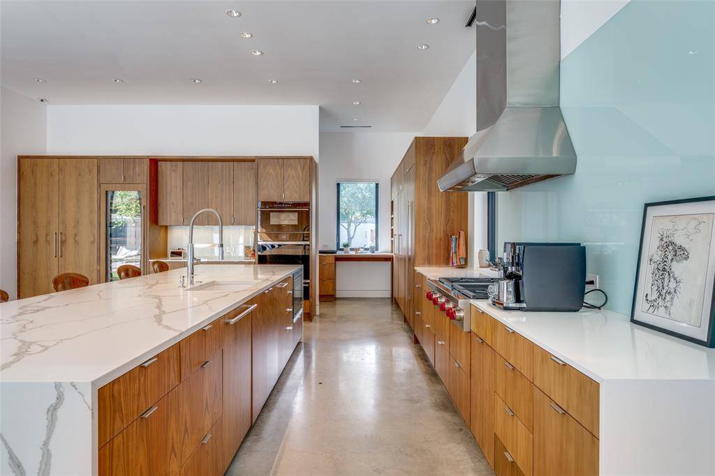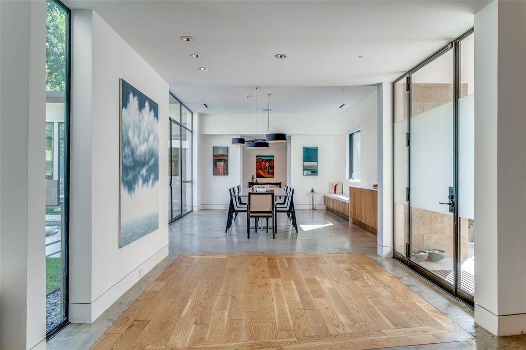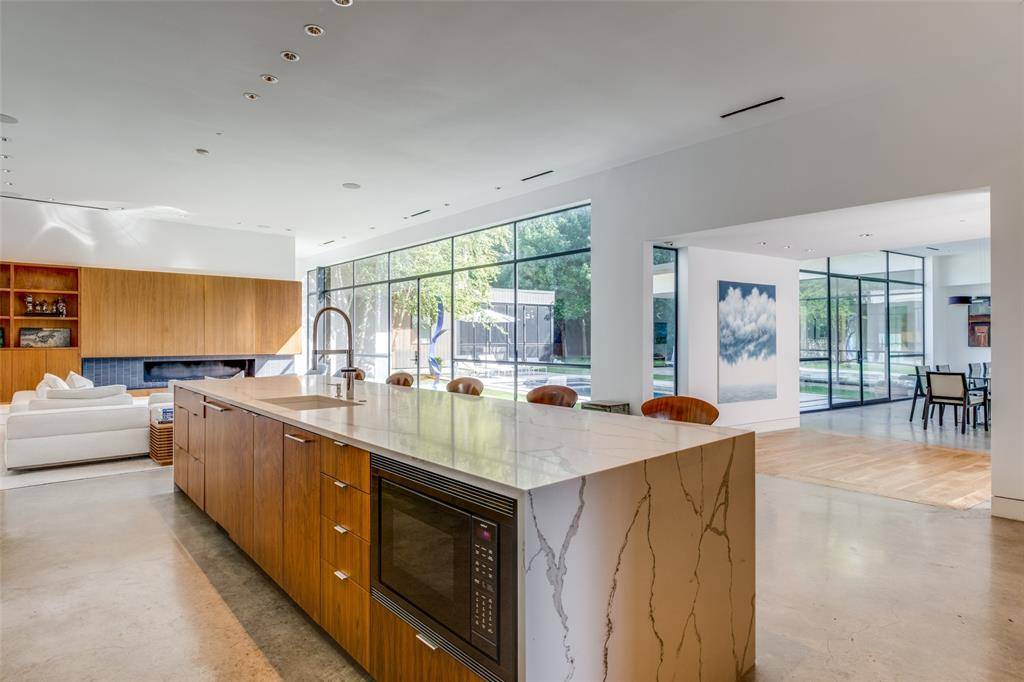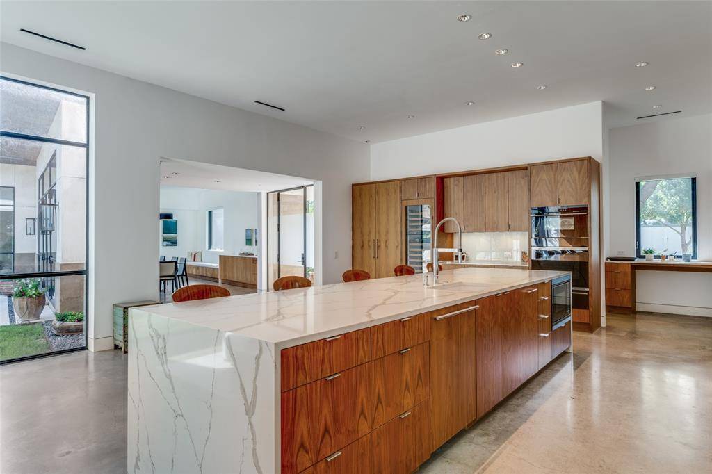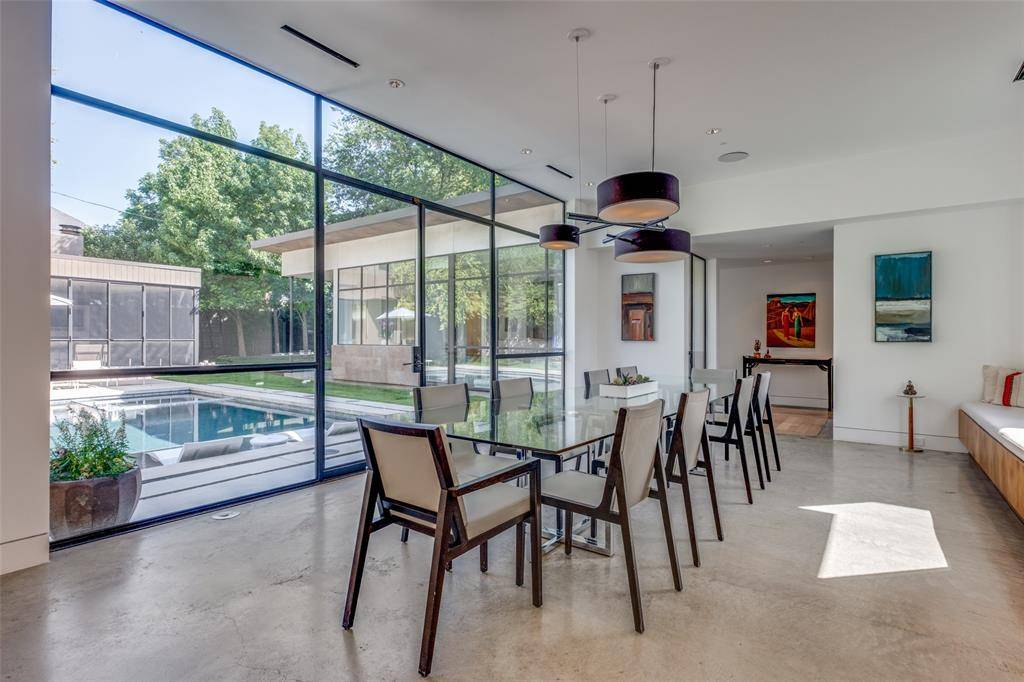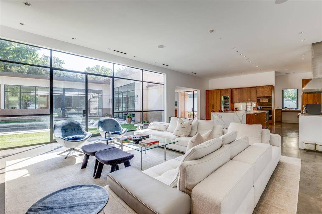 Designed by award winning architects Mitchell and Garman, this striking modern residence features five interconnected structures arranged around a tranquil courtyard and resort style pool, creating complete privacy in the heart of Dallas. Glass corridors, a standing seam metal roof, and expansive steel framed windows bring in natural light while maintaining a strong connection between indoor and outdoor living. Sophisticated interiors include open living spaces with polished concrete floors, walnut cabinetry, custom millwork, and a sleek fireplace. The chef's kitchen offers an oversized island, Wolf appliances, a 70 bottle Sub Zero wine refrigerator, and generous seating for gathering and entertaining. The primary suite provides a peaceful retreat with garden views and spa inspired finishes, while two secondary bedrooms with ensuite baths sit on the first floor. Upstairs includes two additional bedrooms and a flexible second living area. Smart home features include a Control4 system supporting comfort, lighting, climate, and security throughout the home, while multiple outdoor living areas extend the living space into the beautifully designed grounds. A screened in patio with fireplace creates a comfortable setting for year round enjoyment, while sculptural landscaping, a water feature, and thoughtfully designed courtyard spaces create a calm Zen like atmosphere throughout the property. A three car garage and gravel drive complete this architectural masterpiece set within one of Dallas's most desirable locations.