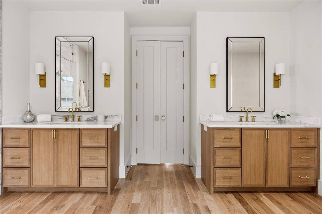 MOVE-IN READY! This exquisite 5,855 sq ft southern transitional home by JB Homes blends luxury, functionality, and quality at every step. Boasting 5 bedrooms, 5.2 bathrooms, and top-tier finishes, this home is perfect for modern living. As you enter, you're welcomed by a light-filled foyer, private office and elegant dining room flanking the entry. The dining room features custom cabinetry and wine storage, while the home's sleek walk-up wet bar adds a touch of sophistication. The chef's kitchen, equipped with Wolf and Sub-Zero appliances, white oak cabinetry, and a spacious walk-in pantry, is a dream come true. A built-in mail station desk and a customizable breakfast nook complete the space, making it both practical and stylish. The expansive family room offers a cozy fireplace, built-in shelving. Upstairs, the primary suite is a true retreat, featuring a private seating area, fireplace, and a luxurious spa-like bath retreat with a soaking tub, steam shower, separate vanities, and an oversized walk-in closet. The downstairs guest bedroom is perfect for visitors, while upstairs, you'll find 3 additional secondary bedrooms—each with its own en-suite bath and closet—as well as a generous game room. The nano doors open from the family room to a large patio with a fireplace and motorized shades. The tranquil yard includes plenty of room for a pool. Located in the prestigious Highland Park ISD and zoned to Hyer Elementary, this home offers both style and convenience. Quality construction and gorgeous interior finishes ensure this home is as functional as it is beautiful. Don't miss the opportunity to own this stunning new build!
