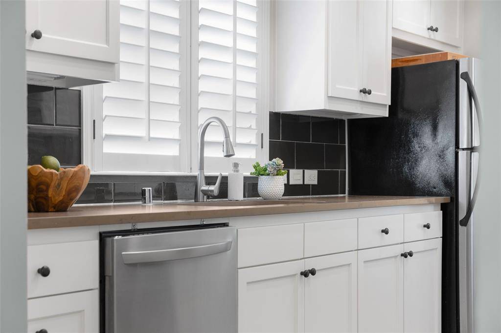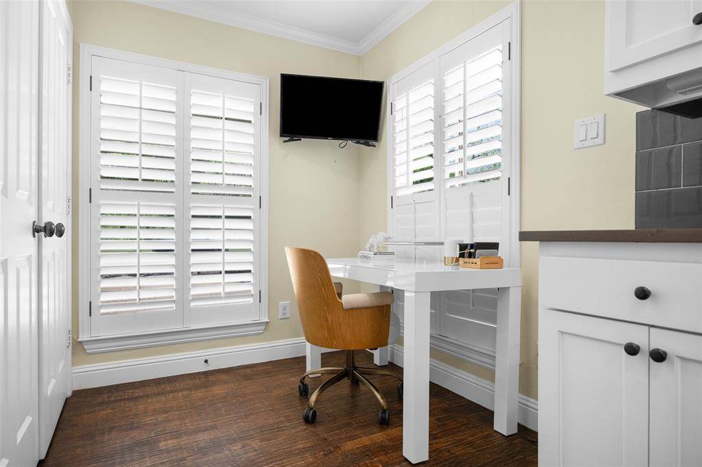Located on the greenbelt, this darling cottage offers a serene setting and the perfect front porch for taking in stunning sunsets. The idyllic location feels like an escape from Dallas while still being conveniently close to all your favorite spots. This inviting 2 bedroom, 1.5 bath home features a thoughtfully designed layout with vaulted ceilings in the living room, custom built-ins, and a cozy wood-burning fireplace. The dining room, complete with additional built-ins and lovely backyard views, opens to the kitchen for easy everyday living. The kitchen offers ample storage, quartz countertops, a breakfast nook currently used as a study, and a generous laundry closet with extra storage. A well placed half bath is conveniently located near the main living spaces. On the opposite side of the home, two bedrooms with good closet space flank a full bath with marble countertops. Filled with timeless charm and natural light, the home also features newer windows and plantation shutters. With peaceful views and easy access to trails and outdoor recreation, this home delivers a relaxed lifestyle in a prime location, whether you are enjoying a quiet morning or unwinding at the end of the day.