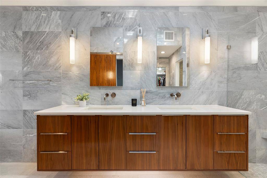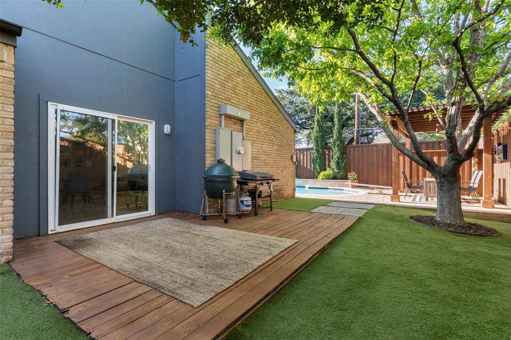 Set on a quarter-acre lot in Prestonwood, 6205 Warm Mist Lane is centered around an architecturally landscaped courtyard that shapes the way the home is experienced every day. Visible from nearly every vantage point, it features maple and creeping evergreen trees, a water feature, flat stone paving, hardwired lighting and thoughtful drainage, creating a calm focal point that changes with the seasons. That connection to the outdoors continues with a beautiful pool, two covered pergolas, a turfed side yard and a second large side yard that gives a family room to play, entertain and spread out. Zoned to Prestonwood Elementary, the layout is both functional and distinctive, offering separation where you want it and shared spaces that still feel connected. Inside, the updates reflect long-term care and function rather than quick cosmetic choices. The kitchen was completely reimagined with custom cabinetry, marble countertops, backsplash, lighting, Miele appliances, built-in refrigeration and gas cooking. The primary bath was fully remodeled with a freestanding tub, custom walnut floating double vanity and expanded walk-in shower with rain head and marble tile to the ceiling. Natural oak floors run throughout the home, adding warmth and continuity. Over more than 20 years of ownership, the home has been improved in the ways that matter: windows, Hardie siding, roof, HVAC systems, tankless water heater, insulation, drainage, pool equipment and landscaping. The result is a home that feels timeless, intentional and impeccably maintained. For a family looking for a home with character, function and meaningful quality in one of North Dallas' most loved neighborhoods, Warm Mist stands apart in all the right ways.