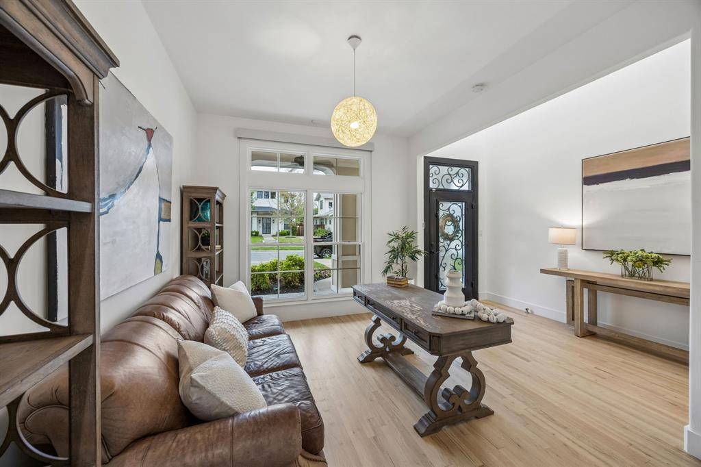 Built in 2005, the residence welcomes you with soaring ceilings, light-stained wood flooring, and expansive Pella windows that flood the interiors with natural light. The open-concept design creates an inviting atmosphere ideal for both relaxed everyday living and entertaining. At the center of the home, the thoughtfully renovated kitchen features custom quartzite and soapstone countertops, stainless steel appliances, a striking three-dimensional tile backsplash, designer lighting, walk-in pantry, gas range, and an oversized island that naturally becomes the gathering place.
