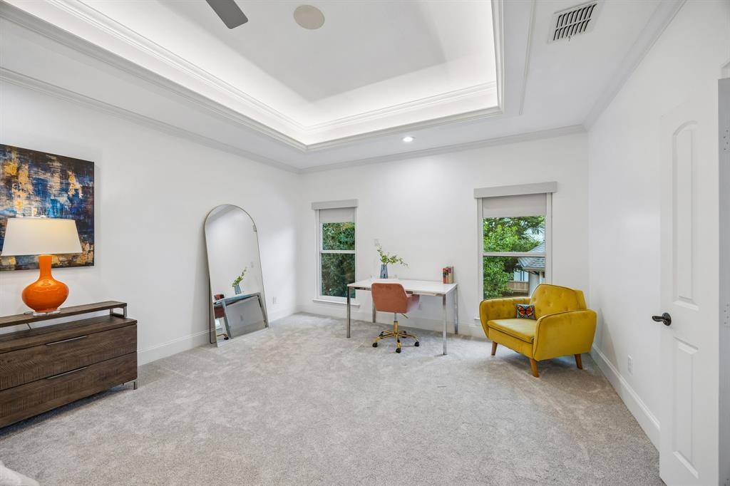 The detached garage with HVAC includes a finished above-garage space, ideal for a home office, studio, or private guest quarters. A porte-cochère with automatic gate provides two additional covered parking spaces for added convenience.