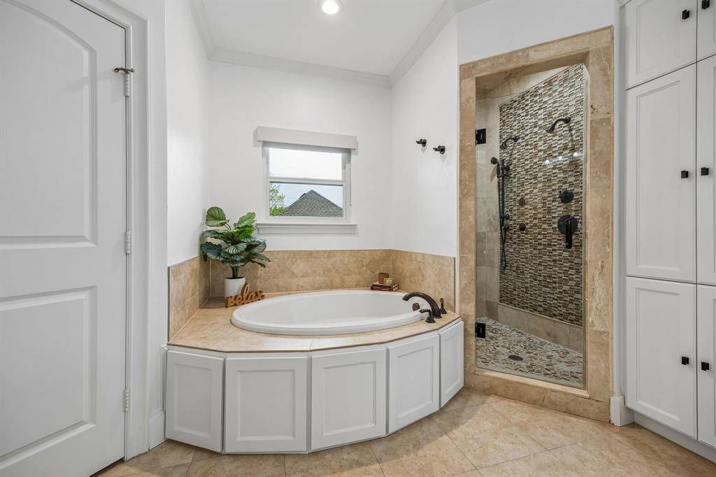 A first-floor guest suite offers versatility for visitors or a private home office. Upstairs, the spacious owner's retreat serves as a peaceful escape, complete with a spa-inspired bath featuring a garden tub, separate shower, and walk-in closet. The second level also includes a generous game room or secondary living area, a large laundry room, and three additional bedrooms with two full baths.
