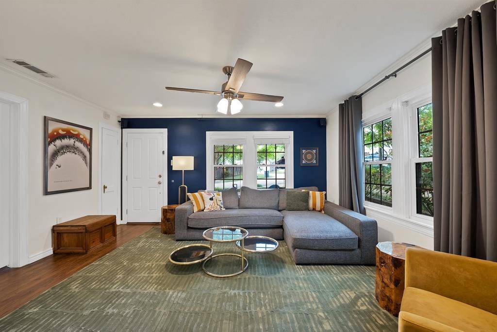 Looking for a Craftsman bungalow near White Rock Lake? This 3-bedroom, 2-bath home in Hollywood Heights is within the highly desired attendance zone for award-winning Lakewood Elementary. Situated in a historic neighborhood and within eyeshot of Hole No. 3 at the D.A. Weibring-designed golf course at Tenison Park, this home offers classic character, modern updates, a large backyard, and a location that puts East Dallas living front and center. It's ideal for buyers searching for walkable neighborhoods, nearby trails, and top-rated schools. Inside, you'll find hardwood floors, defined living and dining spaces, and an updated kitchen with granite countertops, built-in cabinetry, breakfast bar seating, and modern appliances. The single-story layout creates a natural separation between living areas and bedrooms, while features like vaulted ceilings, decorative lighting, and a built-in wine cooler add both style and function. If you're searching for a move-in ready home with character and updated finishes, this one checks the boxes. The primary suite includes an ensuite bath with dual sinks, separate shower, and walk-in closet, while secondary bedrooms offer built-in storage and flexible use for guests, office, or hobbies. The spacious living room flows into a dedicated dining area, creating comfortable, defined spaces for everyday living and entertaining. Enjoy a covered front porch for morning coffee, plus a backyard deck and fully turfed yard with privacy fencing—ideal for entertaining, pets, or low-maintenance outdoor living. The converted garage provides flexible space for a home office, gym, creative studio, or bonus room -- and contains a lockable shed in back accessable from outdoors. Located just steps from the Santa Fe Trail, down the street from neighborhood gathering spot Lindsley Park, and minutes to White Rock Lake, Lakewood Village shopping, dining, and coffee spots, this East Dallas home offers easy access to walking, biking, and everyday conveniences.