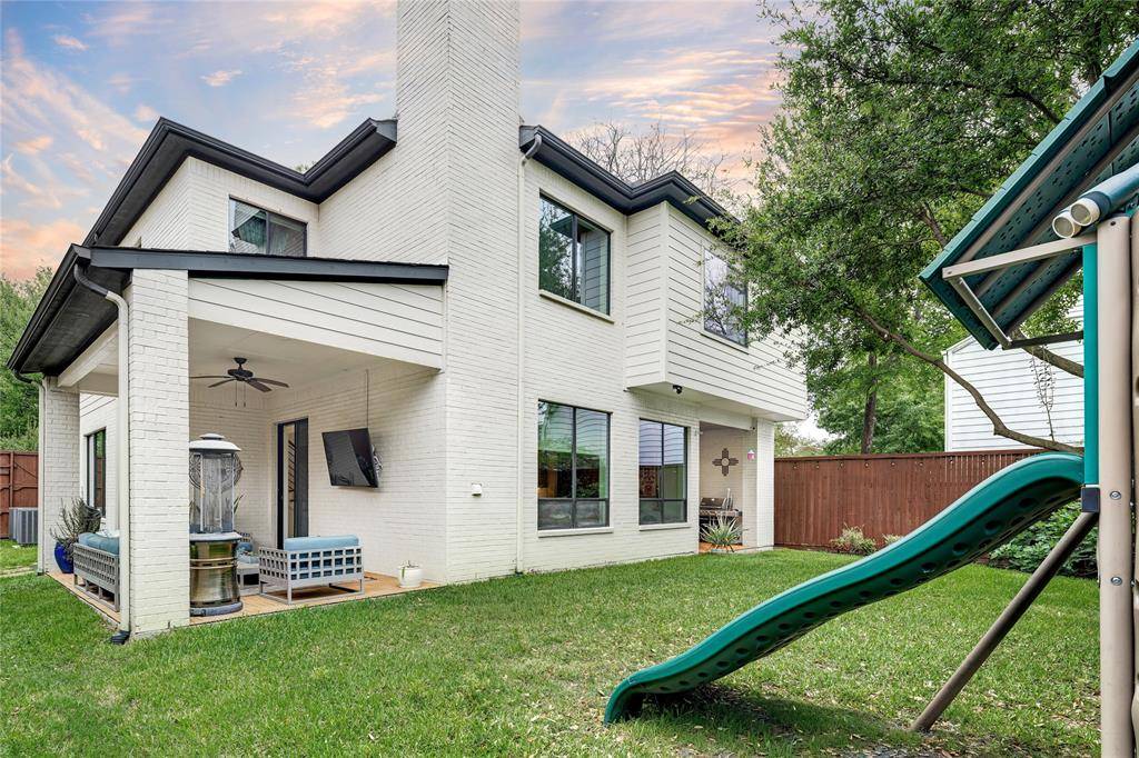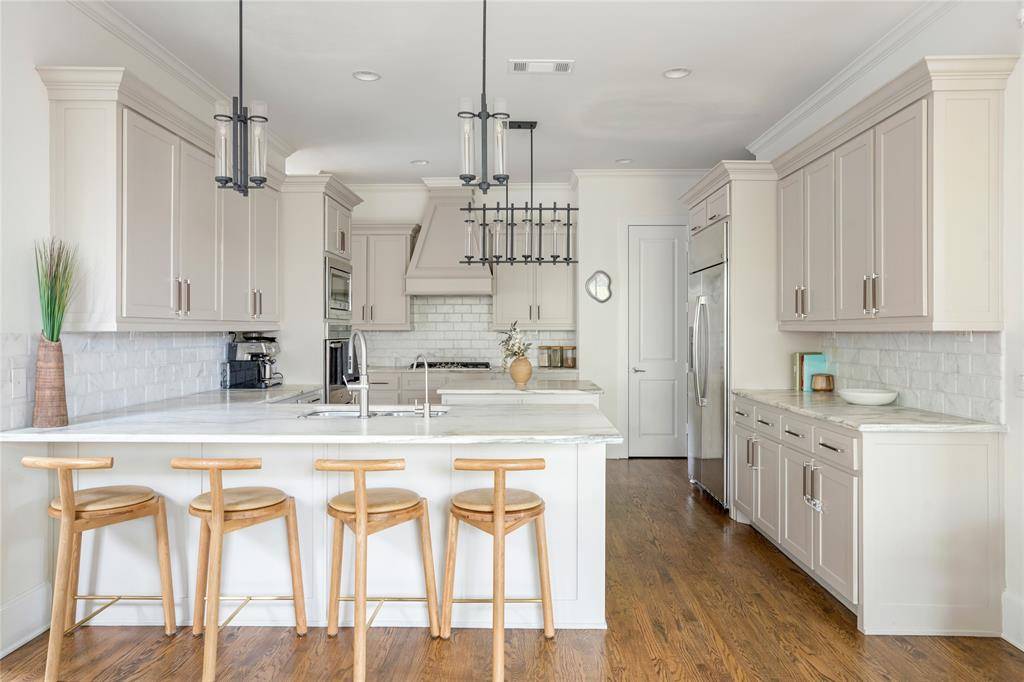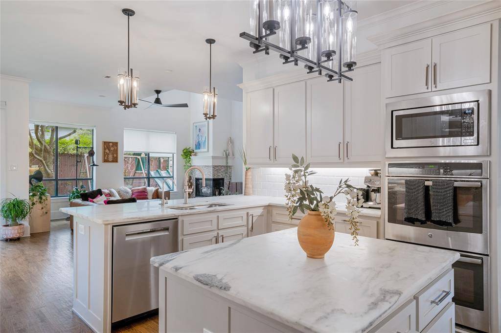 Experience the best of Dallas living in this stunning transitional home nestled in the vibrant Wilshire Heights neighborhood on the M Streets. Spanning 3,763 sq. ft., this meticulously maintained residence has only had one owner and offers an exceptional blend of comfort and style. This 4 bedroom, 3.5-bathroom, featuring a bonus room, is zoned for the highly coveted Mockingbird Elementary and only a 7 minute drive to North Park Mall, 15 minutes from Downtown Dallas and a short drive to a variety of popular restaurants and markets. The thoughtfully designed layout features beautiful large windows and high ceilings throughout, a dedicated office space, two elegant dining areas, and a versatile media room that features a wet bar and a custom-built queen Murphy bed—ideal for entertaining guests or relaxing with family. Find hand-scraped hardwood floors in all the main living spaces, refinished in 2019, that exude warmth and sophistication. The chef's kitchen is a culinary dream, boasting luxurious marble countertops, a striking marble backsplash, and a new 2025 dishwasher and microwave. The homes water supply was upgraded with a whole home water filtration system and water softener. The main floor bathroom was fully updated in 2025, showcasing a solid wood floating vanity and carrera marble mosaic tile floor. The inviting living room is anchored by a beautiful gas fireplace, finished with natural stone tiles and custom gas logs. Hunter Douglas window shades are conveyed with the property and are throughout the home. The properties exterior features large mature trees offering plenty of shade, a private fenced-in backyard to entertain guests and a covered back patio. Don't miss the chance to tour this home, where luxury meets convenience in the heart of one of Dallas's most sought-after neighborhoods.