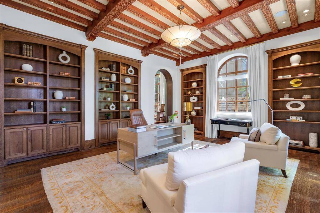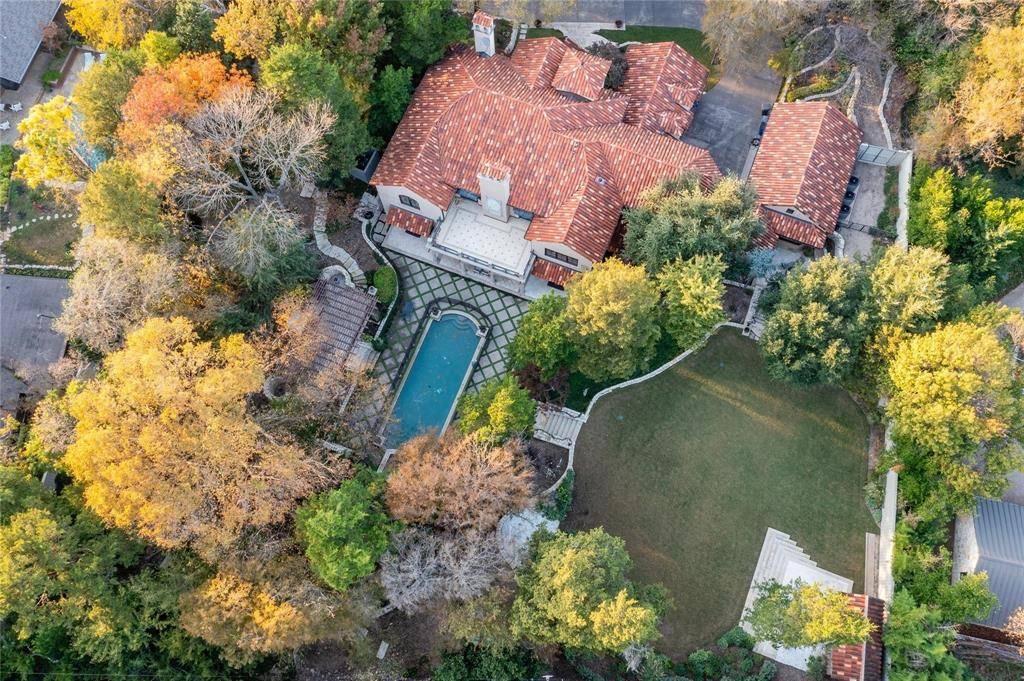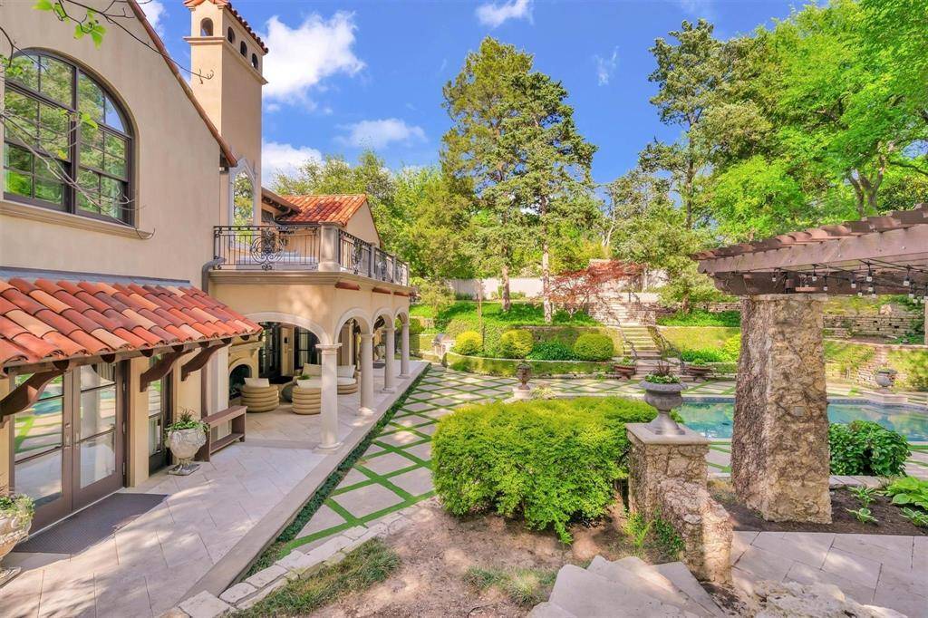 Set on an extraordinary 1.3-acre estate in prestigious Bluffview, this Mediterranean masterpiece is a rare blend of timeless architecture, privacy, and natural beauty. Designed by renowned architect Larry Boerder and masterfully built by Bob Thompson, the home showcases impeccable craftsmanship and refined architectural details throughout. With 4–5 bedrooms and multiple expansive living areas, the residence is thoughtfully designed for both everyday living and grand-scale entertaining. Inside, the kitchen features Subzero and Wolf appliances, while the primary suite is a true sanctuary, offering a large private balcony, dual baths, and separate his-and-hers closets. A 5-car garage provides ample space for collectors and storage, while the expansive grounds offer endless possibilities. The fully gated property offers exceptional privacy and includes a well-appointed guest house. Outdoor living is unparalleled, featuring a sparkling pool, covered patio, and multiple entertaining spaces that seamlessly connect with the surrounding landscape. The breathtaking topography, lush mature trees, and serene setting create a retreat-like atmosphere—so remarkable, it's hard to believe you're in Dallas. This is a one-of-a-kind estate where architecture, nature, and luxury converge in one of Dallas's most coveted