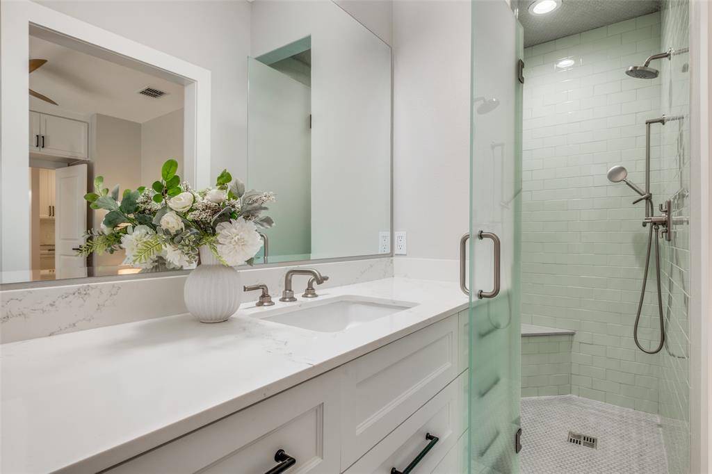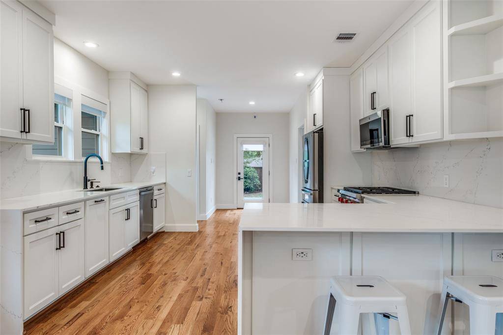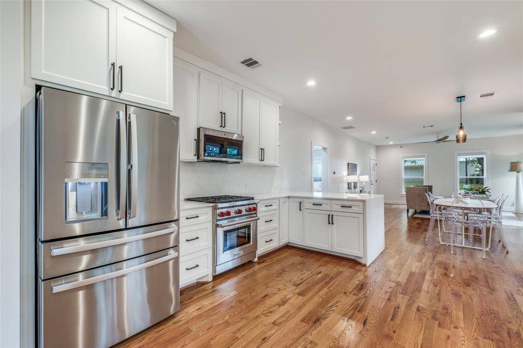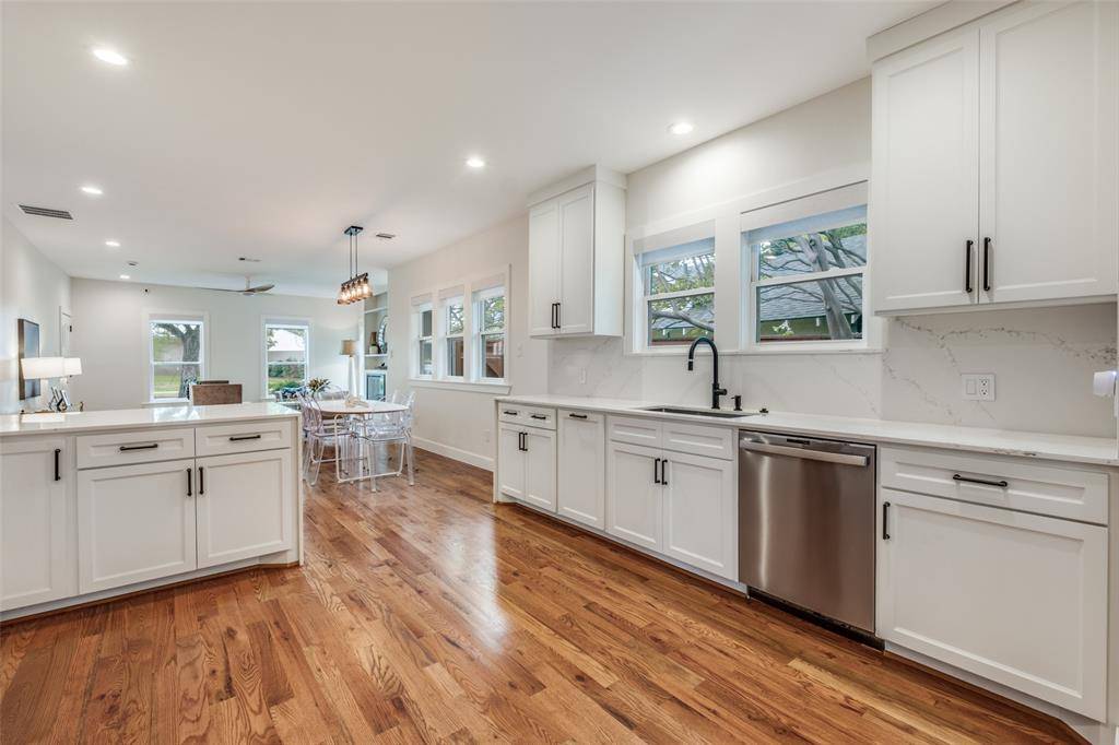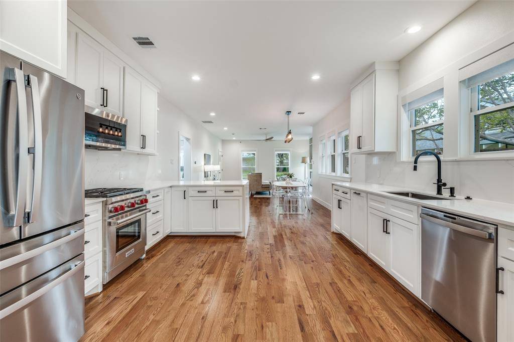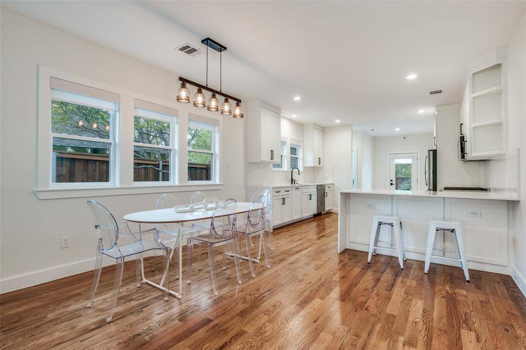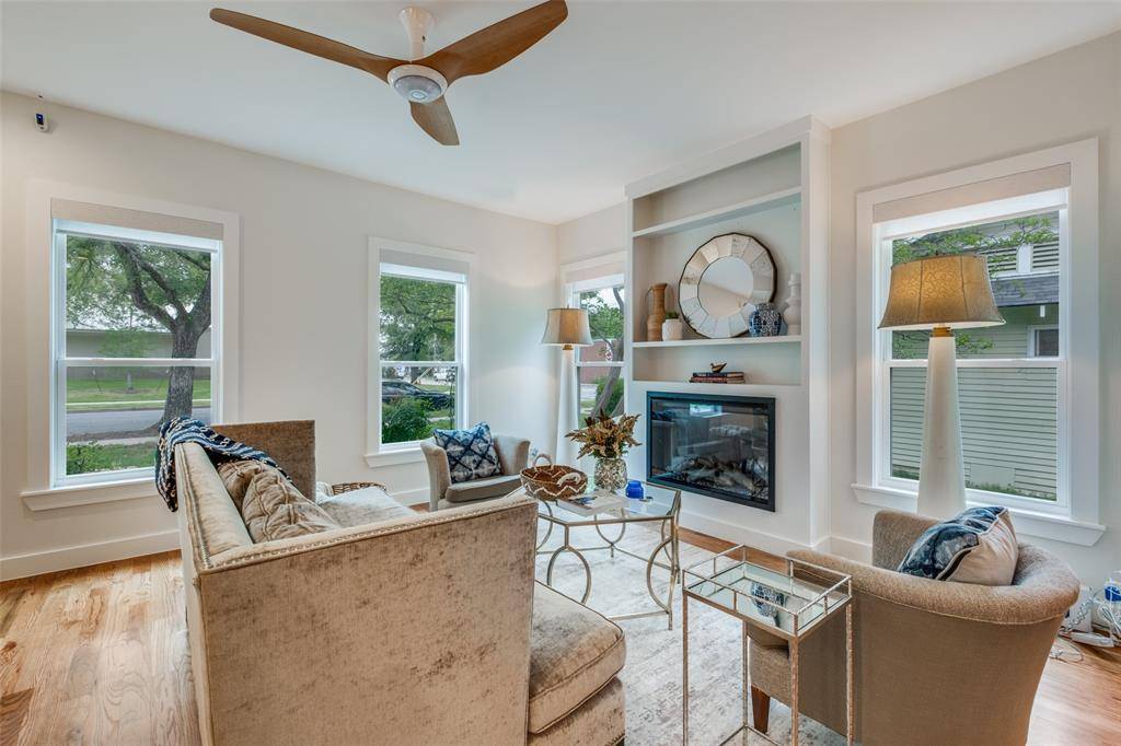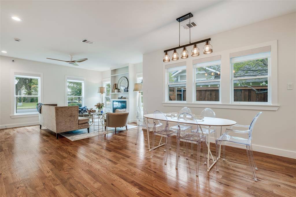 Set within the highly sought after Kings Highway Conservation District, 734 N. Montclair is a thoughtfully reimagined Craftsman blending timeless character with elevated, design forward living. This beautifully updated home showcases top tier finish outs, warm hardwood flooring, custom millwork, and tailored built ins that enhance both function and style. Natural light fills the interior, highlighting clean lines and a refined, cohesive aesthetic. Custom window treatments and designer touches throughout create a sophisticated yet comfortable environment. The kitchen serves as the heart of the home, featuring a Wolf range, granite countertops, and custom cabinetry, perfectly suited for both everyday living and entertaining. The layout has been expanded to offer generous living spaces while maintaining a seamless flow. Both bathrooms have been updated with a modern sensibility, and improvements behind the walls, including updated electrical, provide added peace of mind. Step outside to an expansive deck overlooking a spacious backyard, ideal for entertaining or relaxing. A detached two car garage adds convenience and flexibility. Ideally located near Stevens Park Golf Course, Twelve Hills Nature Preserve, and just minutes from Bishop Arts. Families will appreciate proximity to highly rated Rosemont Elementary, offering a dual language program and a recent $14.1 million renovation. Enjoy walkability to neighborhood parks and local amenities while being tucked into one of Oak Cliff's most established communities. This home qualifies for a $5,000 buyer credit through a preferred lender. A home where thoughtful design meets everyday living, creating a space that feels as good as it looks.