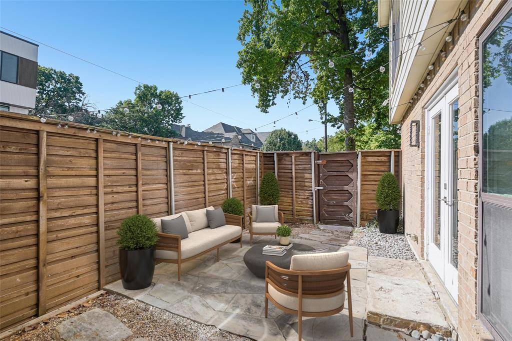 Mature trees frame the gated entry. Natural light from multiple exposures all day long. Moments from the Katy Trail, Turtle Creek, and Oak Lawn's best dining and nightlife. Two outdoor spaces, three levels, and a layout most units around here simply don't have.