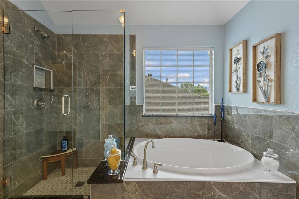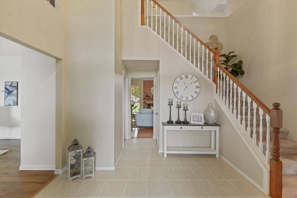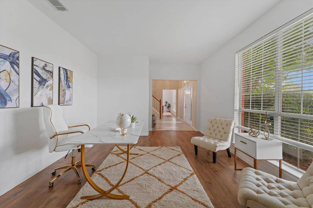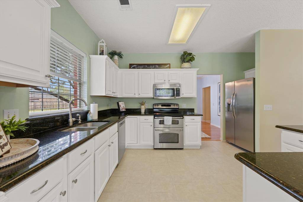 Tucked into the established Creek Crossing Estates community on a prime corner lot, this beautifully maintained, single-owner home offers 2,785 square feet of space defined by a legacy of meticulous care. The experience begins in the grand foyer with soaring high ceilings, leading into a versatile layout that features four bedrooms, 2.5 baths, a dedicated office, and multiple living areas bathed in natural light. At the heart of the home, the kitchen was thoughtfully updated in 2023 with granite countertops and a breakfast bar overlooking the cozy fireplace. Upstairs, the primary suite serves as a true retreat, featuring a private sitting area and an en-suite bath complete with a garden tub, a marble-tiled shower, and dual marble-topped vanities. Beyond the aesthetics, the home has been consistently improved with long-term efficiency in mind. Major recent investments include a new impact-resistant roof (June 2024), which may offer insurance benefits, as well as fully replaced dual HVAC systems and insulated siding. The outdoor experience is equally refined, featuring a new fence (October 2024), a covered patio, and a lush yard maintained by a multi-phase Rain Bird irrigation system. From the recent structural updates to the pristine interior finishes, this is a rare opportunity to own a home that has been loved by a single family since day one—a home the new owners are sure to cherish just as much.