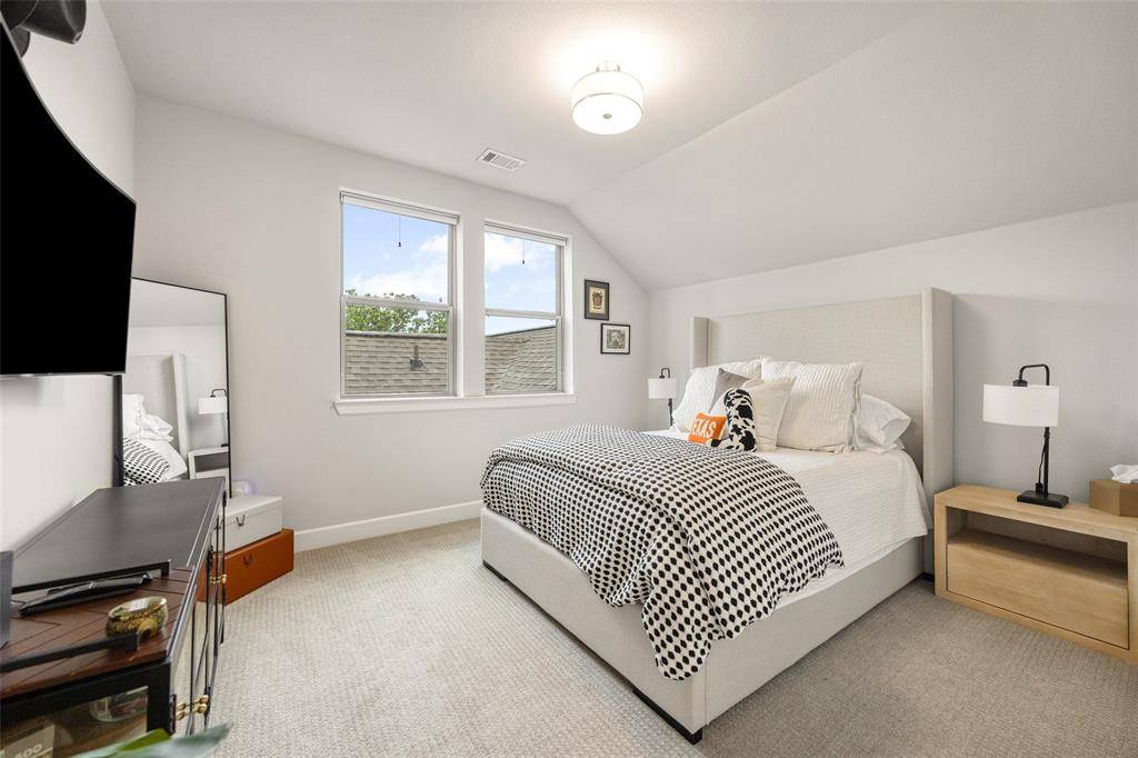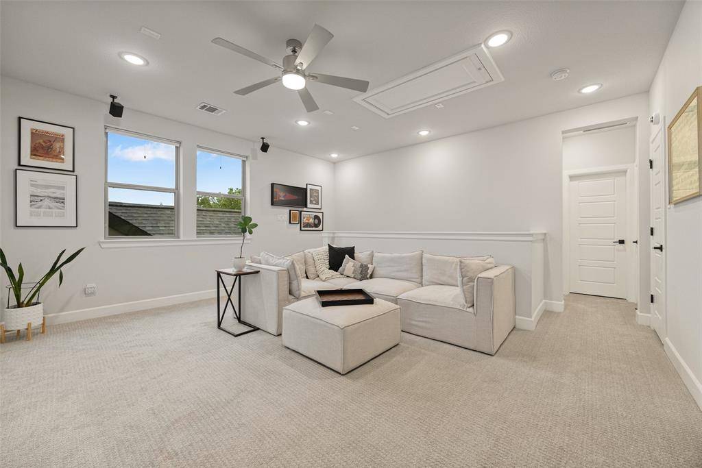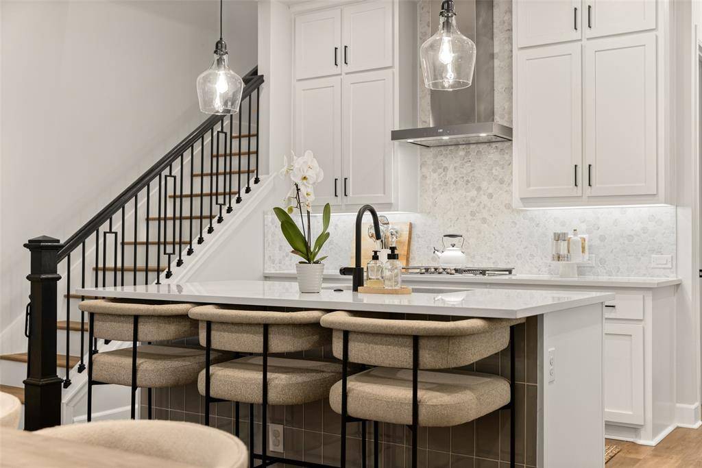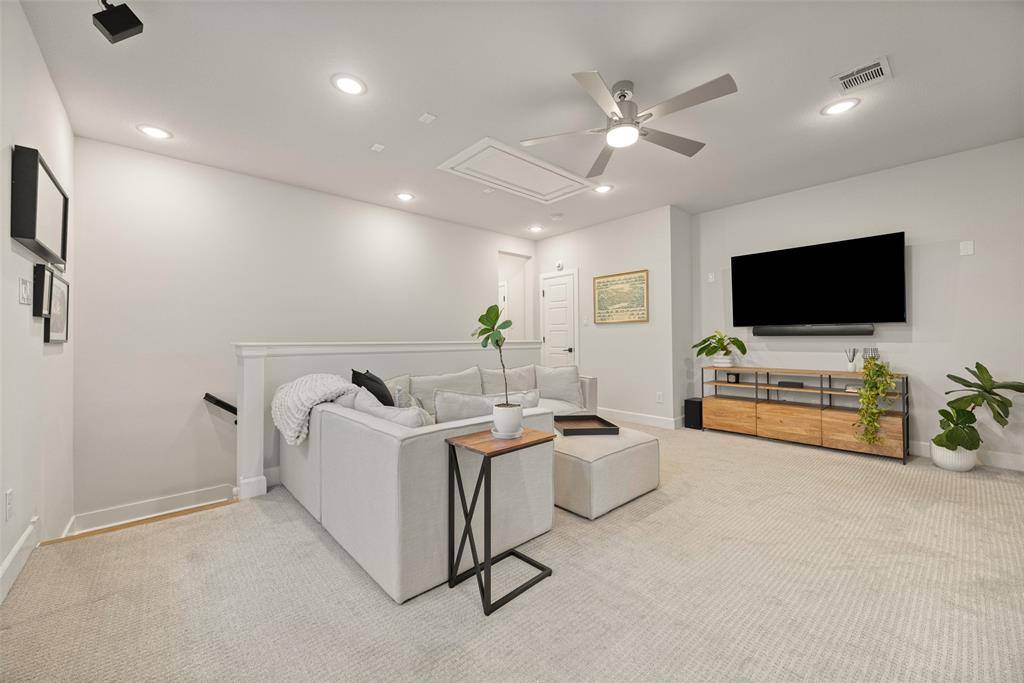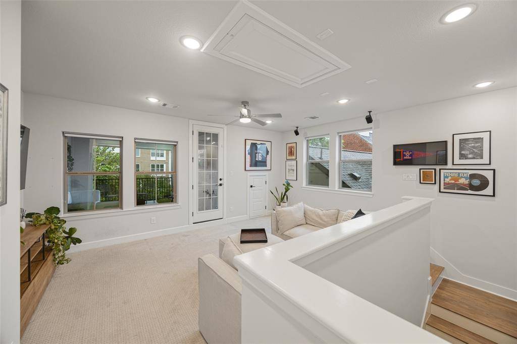 In the Oak Park neighborhood, this 3-bedroom, 3.5-bath single-family home offers a private front yard and a third-floor rooftop deck designed for those who value both quiet mornings and evening views. The main floor is dedicated to an open living room and kitchen area where the Level 4 wall finish and high ceilings create a beautiful, polished backdrop. The kitchen is built for daily use with a large center island with a breakfast bar, quartz countertops and shaker cabinetry. Living in Oak Park means having a home where the layout is intentional, moving naturally from your morning coffee in the gated yard to dinner in the open dining area. The second floor is where the home's organization really shines. At the top of the stairs, the landing is anchored by bonus space, giving you a functional place to work or lounge. The primary suite is a generous retreat on this level, featuring a spa-like ensuite bath and a custom walk-in closet with integrated shelving. A secondary guest room is also located on this floor, complete with its own connected full bath. On the third floor, a large flex space leads directly out to the rooftop deck and patio. This outdoor area is the best spot in the house to catch a breeze over the Oak Park community. A third private bedroom with an ensuite bath is also on this level, making it a great setup for a long-term guest or a media room. To handle the practical side of life, the home includes multiple attic storage spaces built into the floor plan, so you never have to sacrifice living space for extra gear. The Oak Park location keeps you within minutes of the West Highland Park area and the dining corridors of Turtle Creek. Within the community, you can head over to the neighborhood swimming pool or take the dog to one of the two dedicated dog parks. For those who travel or commute, being two miles from Love Field and near the Medical District, Downtown, and the Dallas North Tollway makes the location incredibly efficient.