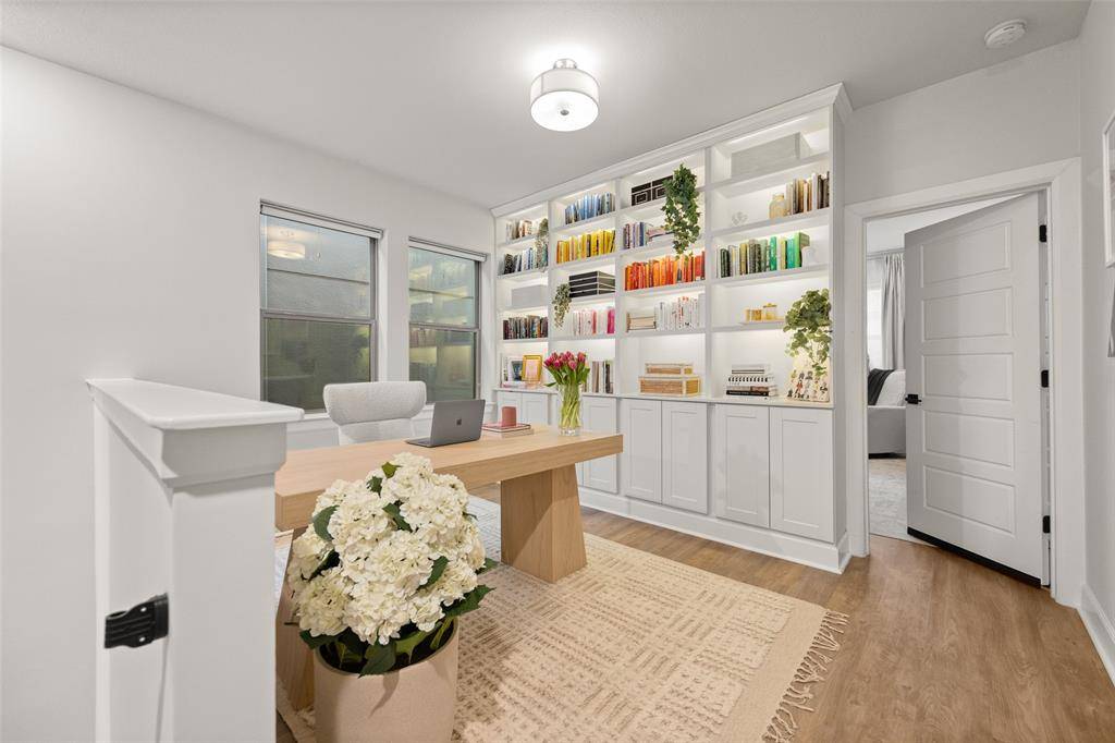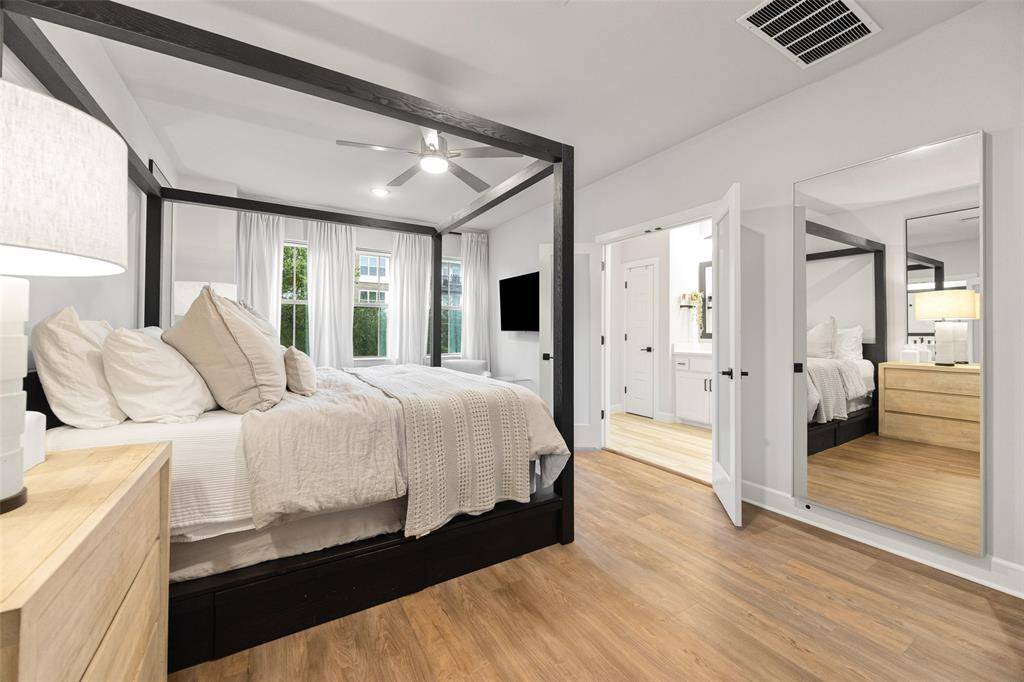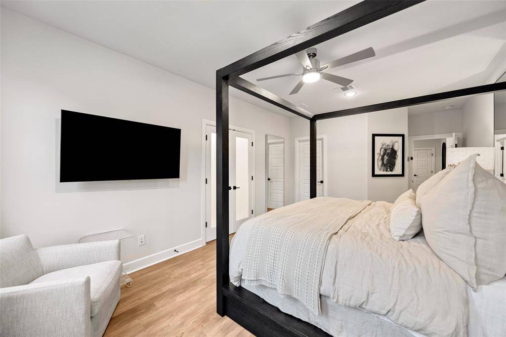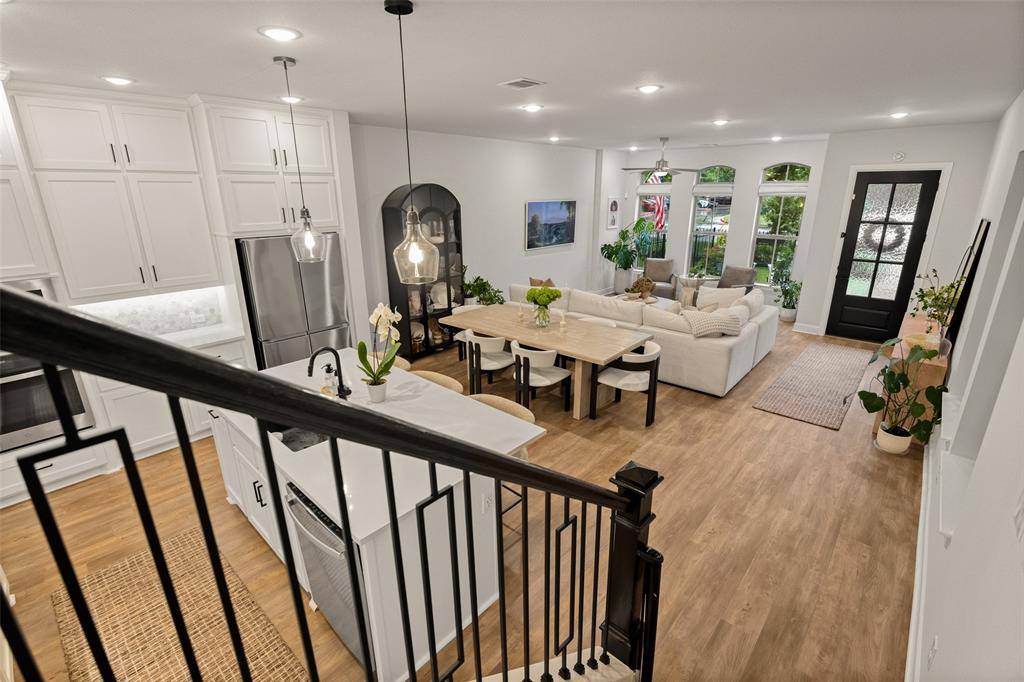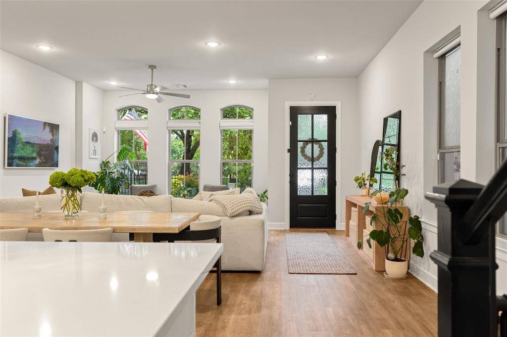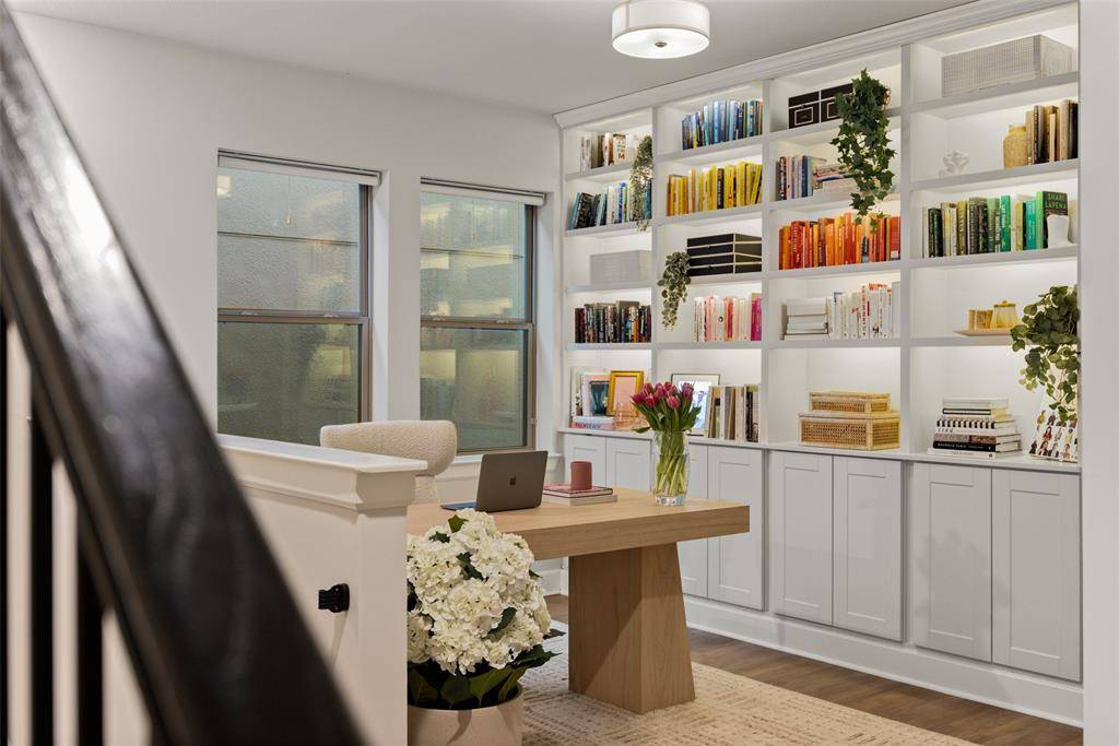 In the Oak Park neighborhood, this 3-bedroom, 3.5-bath single-family home offers a private front yard and a third-floor rooftop deck designed for those who value both quiet mornings and evening views. The main floor is dedicated to an open living room and kitchen area where the Level 4 wall finish and high ceilings create a beautiful, polished backdrop. The kitchen is built for daily use with a large center island with a breakfast bar, quartz countertops and shaker cabinetry. Living in Oak Park means having a home where the layout is intentional, moving naturally from your morning coffee in the gated yard to dinner in the open dining area. The second floor is where the home's organization really shines. At the top of the stairs, the landing is anchored by bonus space, giving you a functional place to work or lounge. The primary suite is a generous retreat on this level, featuring a spa-like ensuite bath and a custom walk-in closet with integrated shelving. A secondary guest room is also located on this floor, complete with its own connected full bath. On the third floor, a large flex space leads directly out to the rooftop deck and patio. This outdoor area is the best spot in the house to catch a breeze over the Oak Park community. A third private bedroom with an ensuite bath is also on this level, making it a great setup for a long-term guest or a media room. To handle the practical side of life, the home includes multiple attic storage spaces built into the floor plan, so you never have to sacrifice living space for extra gear. The Oak Park location keeps you within minutes of the West Highland Park area and the dining corridors of Turtle Creek. Within the community, you can head over to the neighborhood swimming pool or take the dog to one of the two dedicated dog parks. For those who travel or commute, being two miles from Love Field and near the Medical District, Downtown, and the Dallas North Tollway makes the location incredibly efficient.