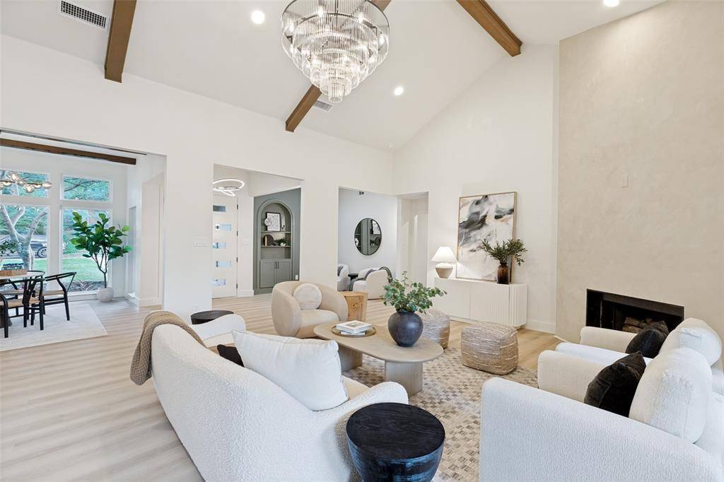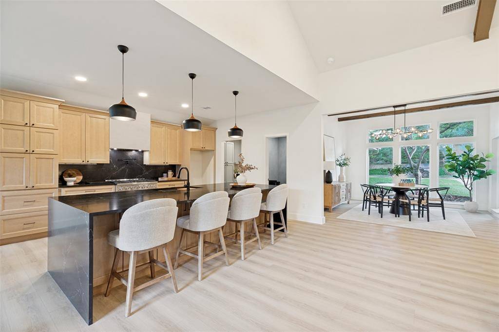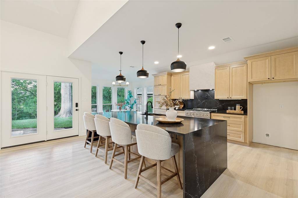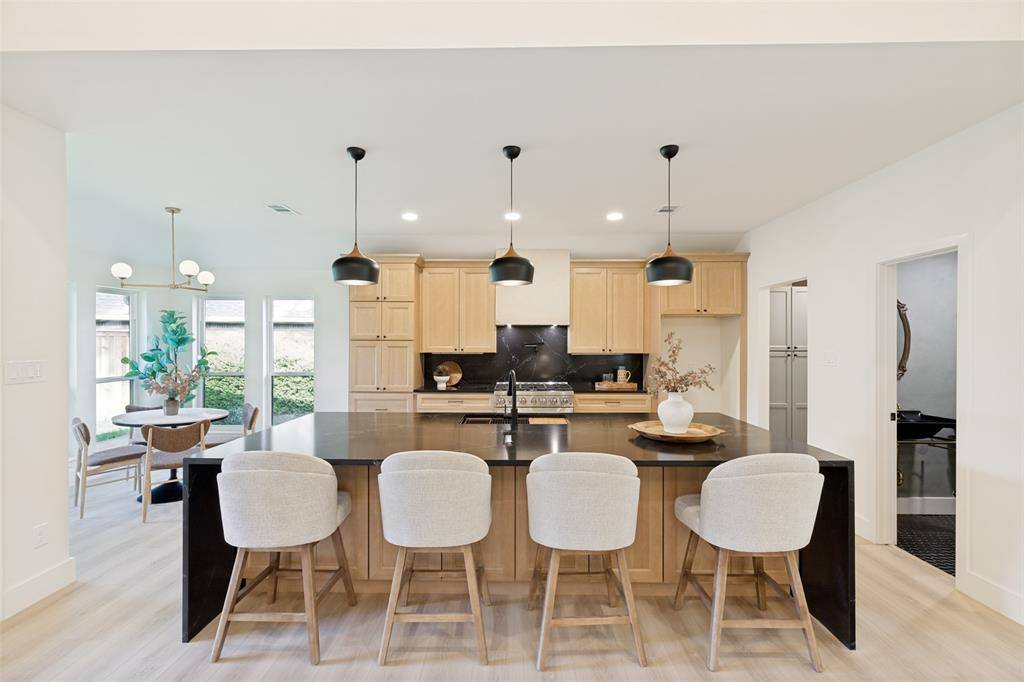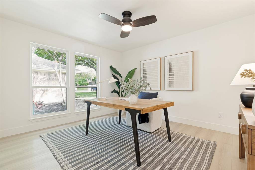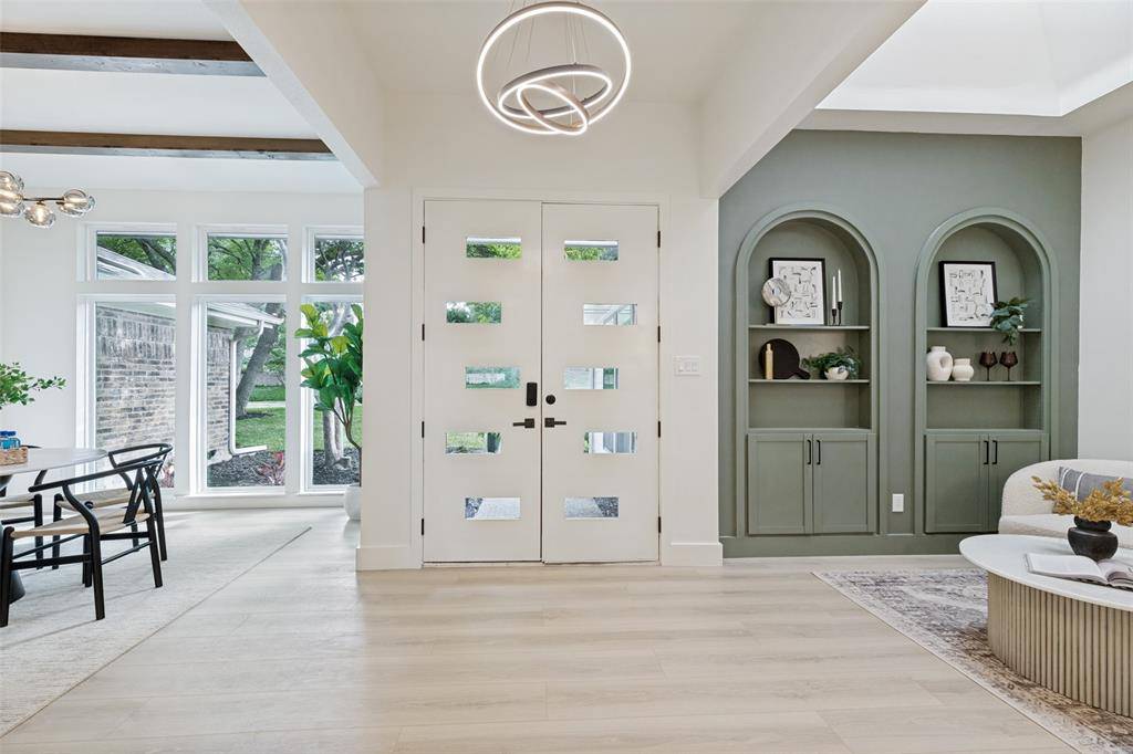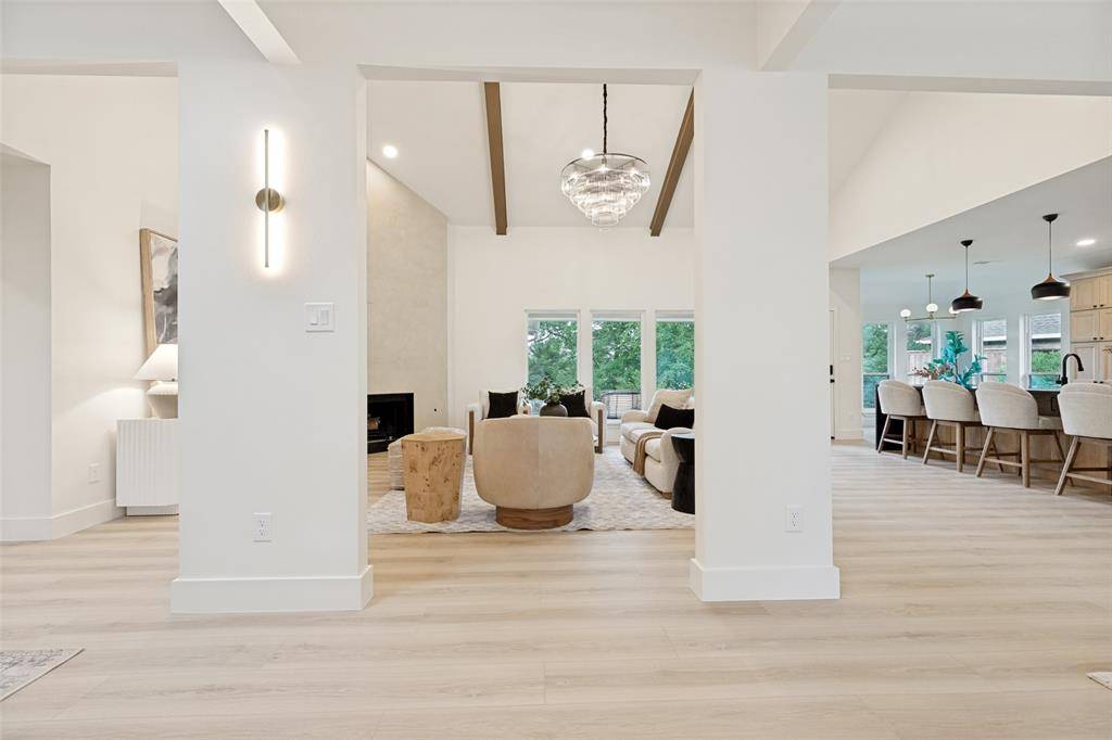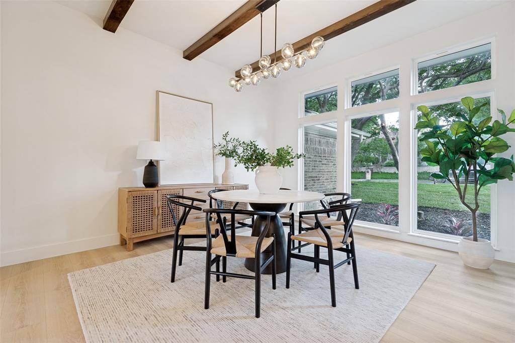 Set beneath mature trees on a rare oversized creek lot in Pitman Creek Estates, this extensively renovated residence offers a private, retreat-like setting in one of Plano's most established neighborhoods. The interior was thoughtfully redesigned for flow and functionality, featuring a refined neutral palette, wide-plank white oak-tone flooring, solid core doors, and designer lighting throughout.